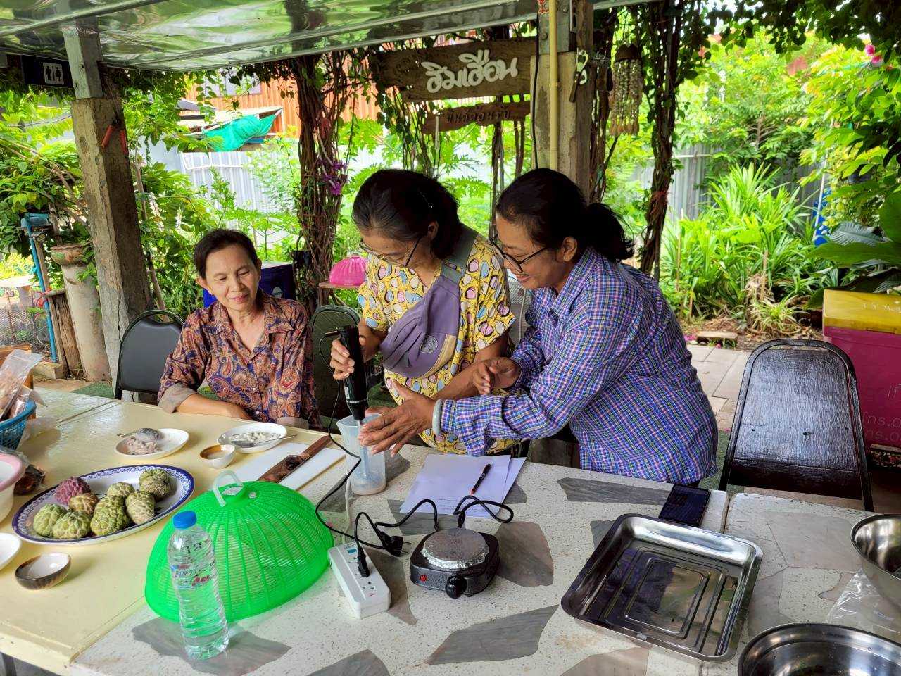 รายงานไตรมาส 4 การให้คำปรึกษาและข้อมูลเทคโนโลยีเพื่อชุมชน เรื่อง การศึกษาแนวทางการแก้ปัญหาผลผลิตน้อยหน่าตกเกรดของชุมชนบ้านน้ำจั้นโดยการแปรรูป