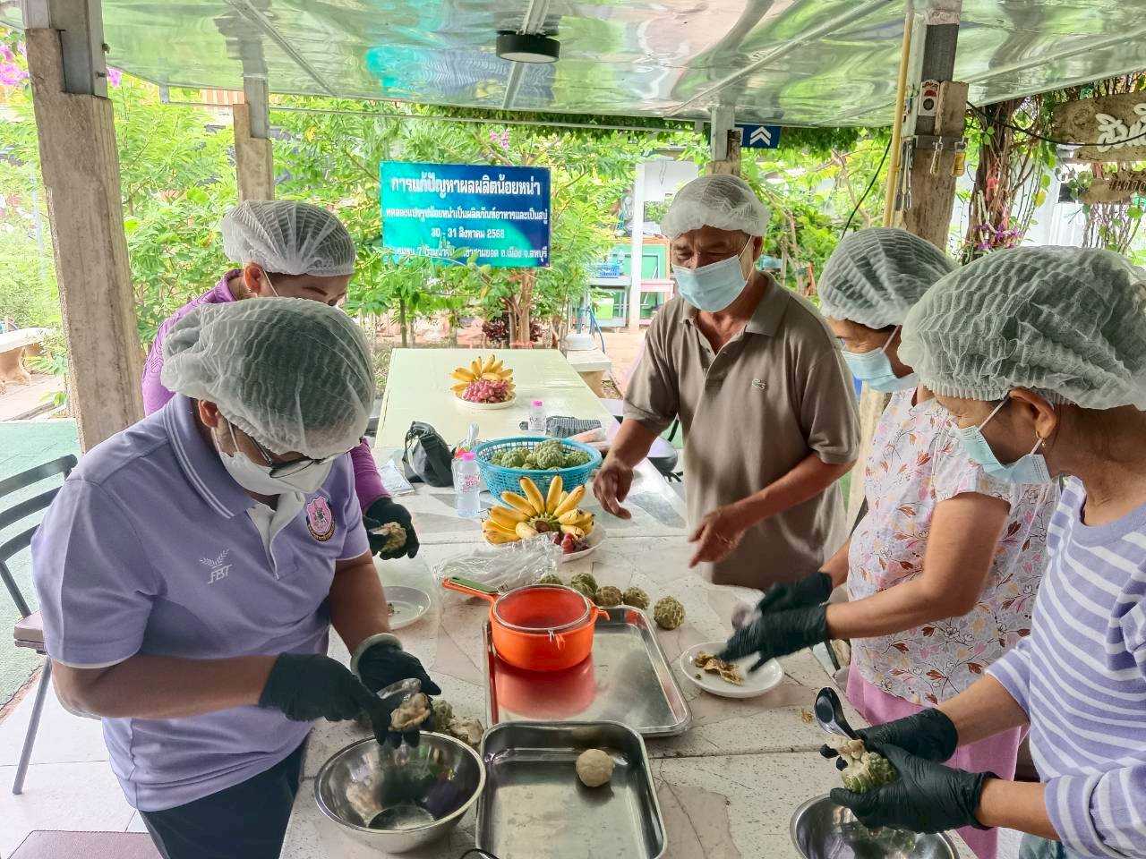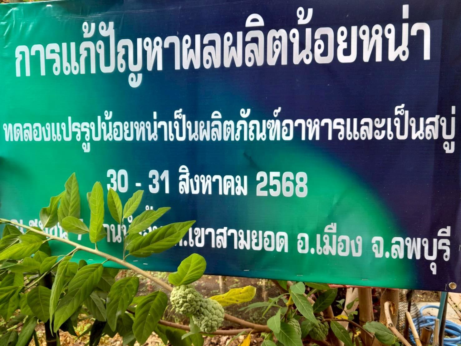 เมื่อวันที่ 30-31 สิงหาคม 2568 นำโดย ผู้ช่วยศาสตราจารย์ ดร.ภาราดร งามดี ได้ลงพื้นที่ ณ ชุมชนผู้ปลูกน้อยหน่าบ้านน้ำจั้น ตั้งอยู่ที่หมูที่ 2 ตำบลเขาสามยอด อำเภอเมือง จังหวัดลพบุรี ซึงผู้นำชุมชนได้แจ้งปัญหาเข้ามาทางสำนักงานคลินิกเทคโนโลยี มหาวิทยาลัยราชภัฏเทพสตรี เรื่อง การเน่าเสียของผลผลิตน้อยหน่า ทางคลินิกเทคโนโลยีจึงประสานงานไปทางผู้ช่วยศาสตราจารย์ ดร.ภาราดร งามดี ผู้ที่มีเชี่ยวชาญทางด้านวิทยาศาสตร์การอาหาร พร้อมทีมวิทยากร เพื่อลงพื้นที่แก้ปัญหาดังกล่าว ทางผู้ช่วยศาสตราจารย์ ดร.ภาราดร งามดี และทีมวิทยากรได้จัดทำองค์ความรู้และถ่ายทอดเทคโนโลยีการแปรรูปอาหารโดยการทำให้น้อยหน่าที่ได้รับผลกระทบแปรรูปเป็นกัมมี่น้อยหน่า และลูกอมน้อยหน่า ในส่วนการถ่ายทอดองค์ความรู้ลำดับที่ 2 คือการแปรรูปผลิตภัณฑ์น้อยหน่าให้เป็นสบู่กรีเซอรีน ทางผู้เข้าร่วมอบรมได้รับความรู้ที่ได้รับนำไปประยุกต์ใช้และแก้ปัญหาผลผลิตน้อยหน่าที่เสียหายได้