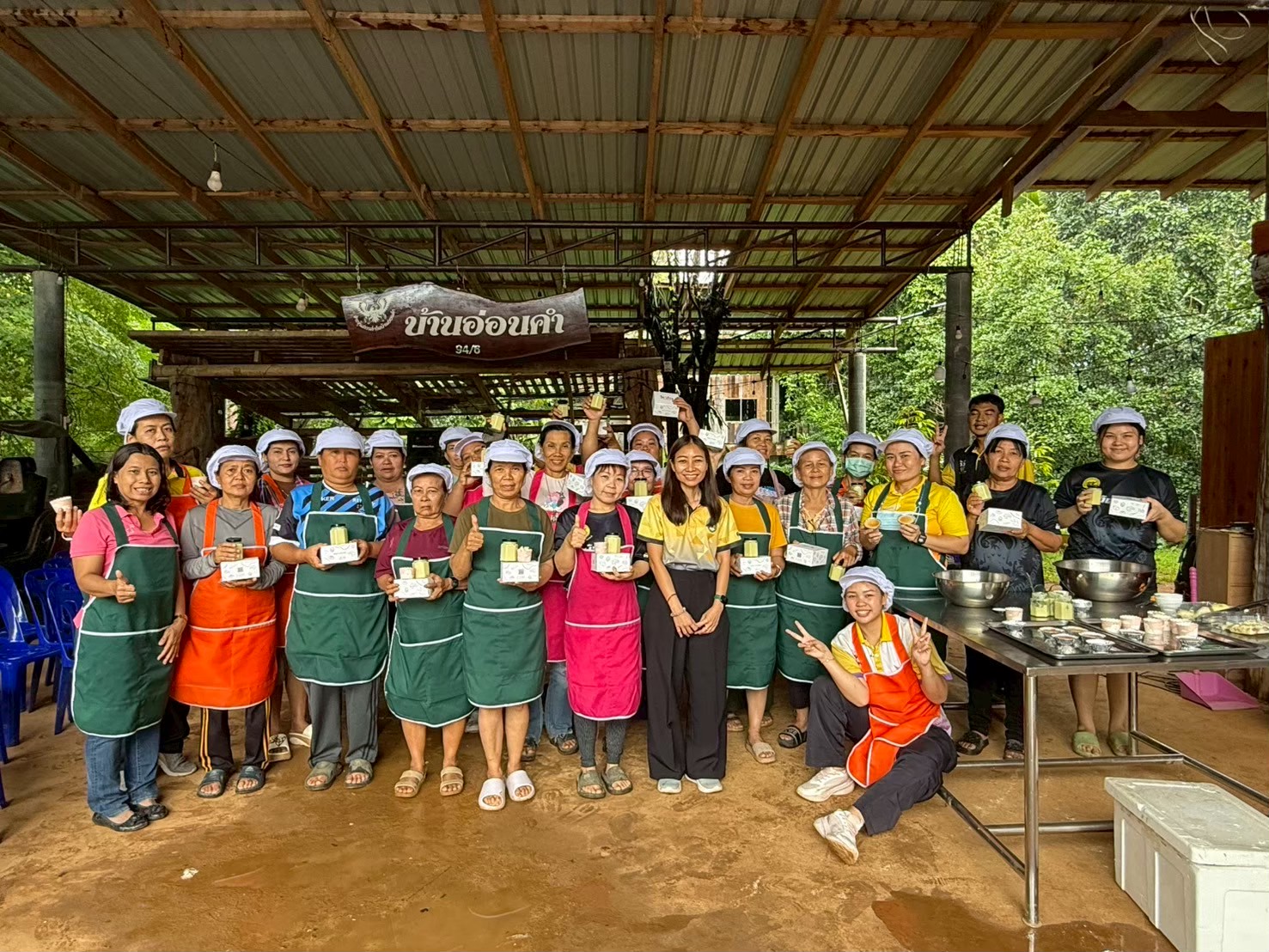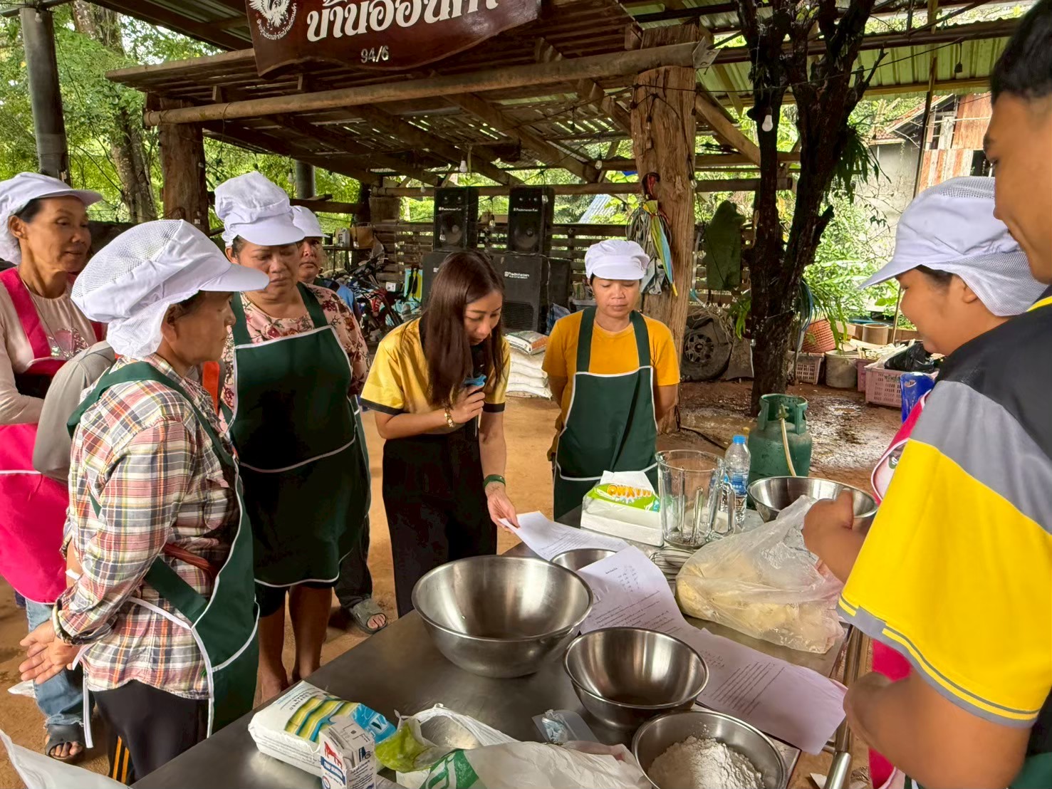 โดยวิทยากร ผู้ช่วยศาสตราจารย์ณัฐณิชา ทวีแสงและอาจารย์สุวิมล กะตากูล เรเกอร์ส คณะวิทยาศาสตร์และเทคโนโลยี ณ วิสาหกิจชุมชนกลุ่มสตรีพัฒนาสะพานลาว ตำบลสหกรณ์นิคม อำเภอทองผาภูมิ จังหวัดกาญจนบุรี