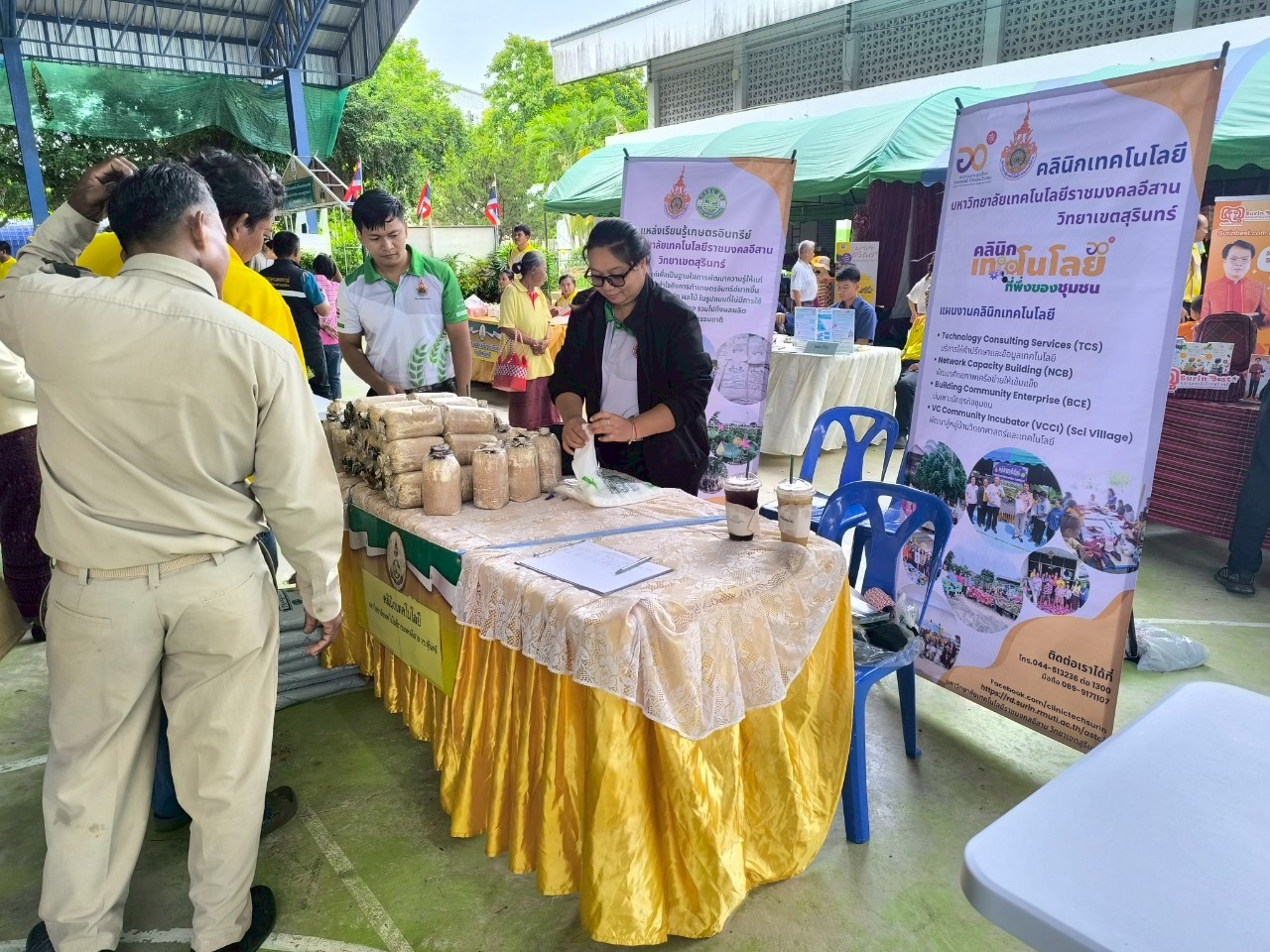 วันที่ 24 กรกฎาคม 2568คลินิกเทคโนโลยี มหาวิทยาลัยเทคโนโลยีราชมงคลอีสาน วิทยาเขตสุรินทร์ ได้เข้าร่วมโครงการคลินิกเกษตรเคลื่อนที่ในพระราชานุเคราะห์ฯ ประจำปีงบประมาณ พ.ศ. 2568 ไตรมาสที่ 4 ณ รงเรียนสำโรงทาบวิทยาคม ตำบลสำโรงทาบ อำเภอสำโรงทาบ จังหวัดสุรินทร์ โดยได้ออกจัดนิทรรศการบริการให้คำปรึกษาให้ความรู้เรื่องเกี่ยวกับการทำก้อนเชื้อเห็ดนางฟ้าและเห็ดนางรม และการผลิตดินปลูกอินทรีย์ปุ๋ยอินทรีย์บำรุงดิน พร้อมนำมาจำหน่ายให้กับประชาชนผู้ที่สนใจเข้ามารับบริการมีเจ้าหน้าที่ประจำบูท คือ นางสาวธันยกานต์ คูณสิน หัวหน้าศูนย์วิจัย บริการวิชาการและทดสอบนายจักรินทร์ สนุกแสน และ นายชัชวาลย์ ไทยยิ่งที่ให้คำปรึกษาและรับบริการให้กับเกษตรกรผู้มาเยี่ยมชมงานครั้งนี้ รายงานโดย นายชัชวาลย์ ไทยยิ่ง วันที่รายงาน 23/09/2568 [20087] |