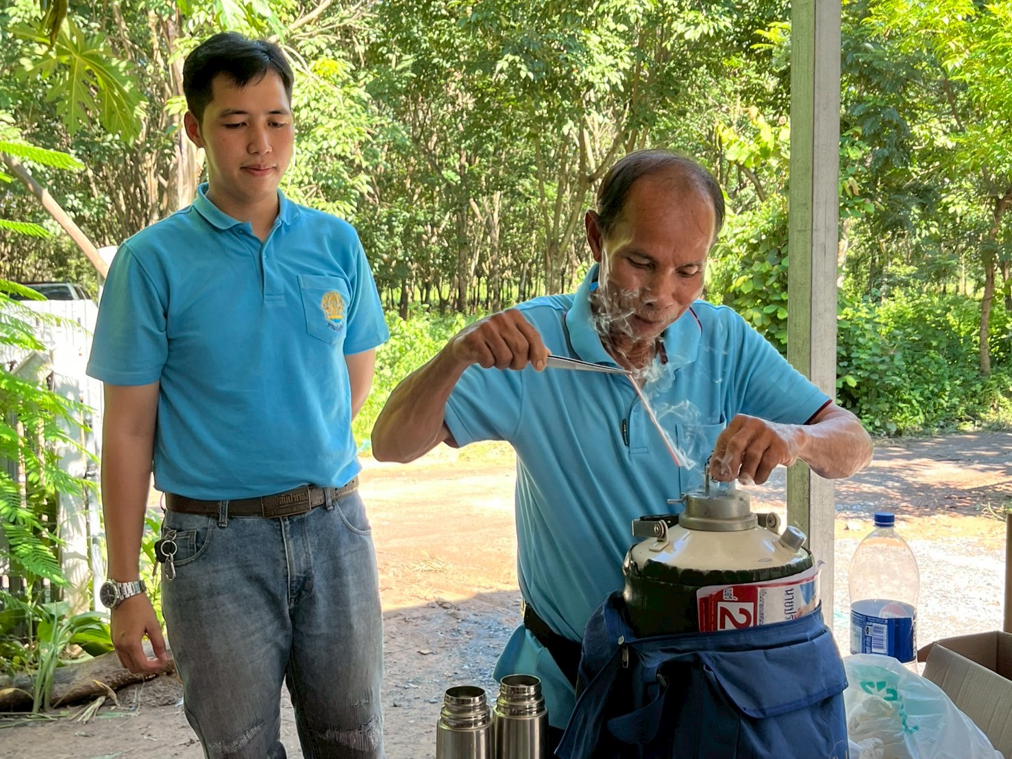 เมื่อวันที่ 28 สิงหาคม 2568 ที่ผ่านมา กลุ่มงานกิจกรรมและโครงการพิเศษ สำนักงานผู้อำนวยการ วิทยาลัยชุมชนหนองบัวลำภู นำโดย นายกวินท์ คำปาละ, นางสาวไอลดา กุตัน และนางสาววีระวรรณภรณ์ จำรองเพ็ง ร่วมกับศูนย์วิจัยการผสมเทียมและเทคโนโลยีชีวภาพขอนแก่น โดย นายวีรยุทธ จังพล, นายชัยรัตน์ รามสีดา และนายกฤตนัย ยาวิลาศ ลงพื้นที่ตรวจ การตั้งท้องของแพะด้วยเครื่องอัลตราซาวด์, ตรวจสุขภาพแพะและทำวัคซีนแพะ, ถ่ายพยาธิแพะ และสอดฮอร์โมนเหนี่ยวนำการเป็นสัดให้แพะยังไม่ตั้งท้อง เพื่อเตรียมพร้อมสำหรับการอบรมหลักสูตร การเพิ่มประสิทธิภาพระบบสืบพันธุ์ ด้วยเทคโนโลยีการผสมเทียม ในวันที่ 11-12 กันยายน 2568 นี้ โดยได้รับคำแนะนำจาก รศ.น.สพ.ดร. ฤทธิชัย พิลาไชย ภายใต้โครงการส่งเสริมและพัฒนาคุณภาพชีวิตด้านอาชีพของคนในจังหวัดหนองบัวลำภู ณ วิสาหกิจชุมชนเลี้ยงแพะบ้านกุดดู่ ต.กุดดู่ อ.โนนสัง จ.หนองบัวลำภู รายงานโดย นางสาวไอลดา กุตัน วันที่รายงาน 18/09/2568 [20002] |