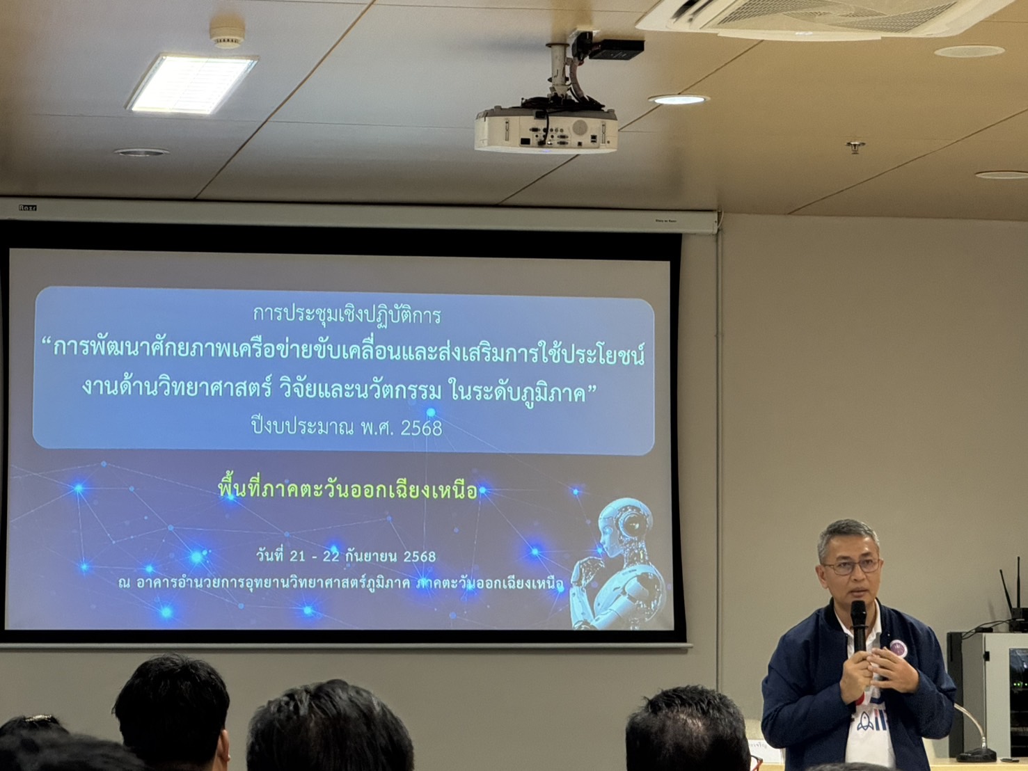 นายกวินท์ คำปาละ หัวหน้าโครงการ เข้าร่วมการประชุมเชิงปฏิบัติการเรื่อง “การพัฒนาศักยภาพเครือข่ายขับเคลื่อนและส่งเสริมการใช้ประโยชน์งานด้านวิทยาศาสตร์ วิจัยและนวัตกรรม ในระดับภูมิภาค” ปีงบประมาณ พ.ศ. 2568 พื้นที่ภาคตะวันออกเฉียงเหนือ ตั้งแต่วันที่ 21 - 22 กันยายน 2568 ณ อาคารอำนวยการอุทยานวิทยาศาสตร์ภูมิภาค ภาคตะวันออกเฉียงเหนือ จังหวัดขอนแก่น รายงานโดย นายกวินท์ คำปาละ วันที่รายงาน 30/09/2568 [20536] |