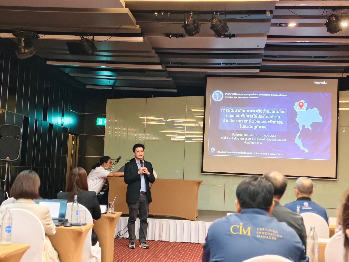 นำเสนอผลการดำเนินงานที่ได้รับมอบรางวัลในการจัดกิจกรรมการส่งเสริมการใช้ประโยชน์ทางวิทยาศาสตร์ วิจัยและนวัตกรรม Science Research and Innovation (SRI) NETWORK TOWNHALL ภายในงาน อว. แฟร์  (Success case/ปัจจัยความสำเร็จ)