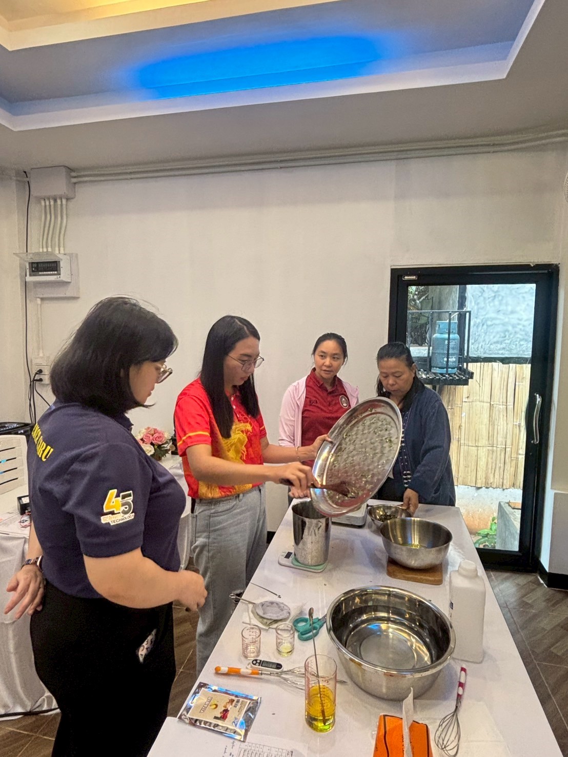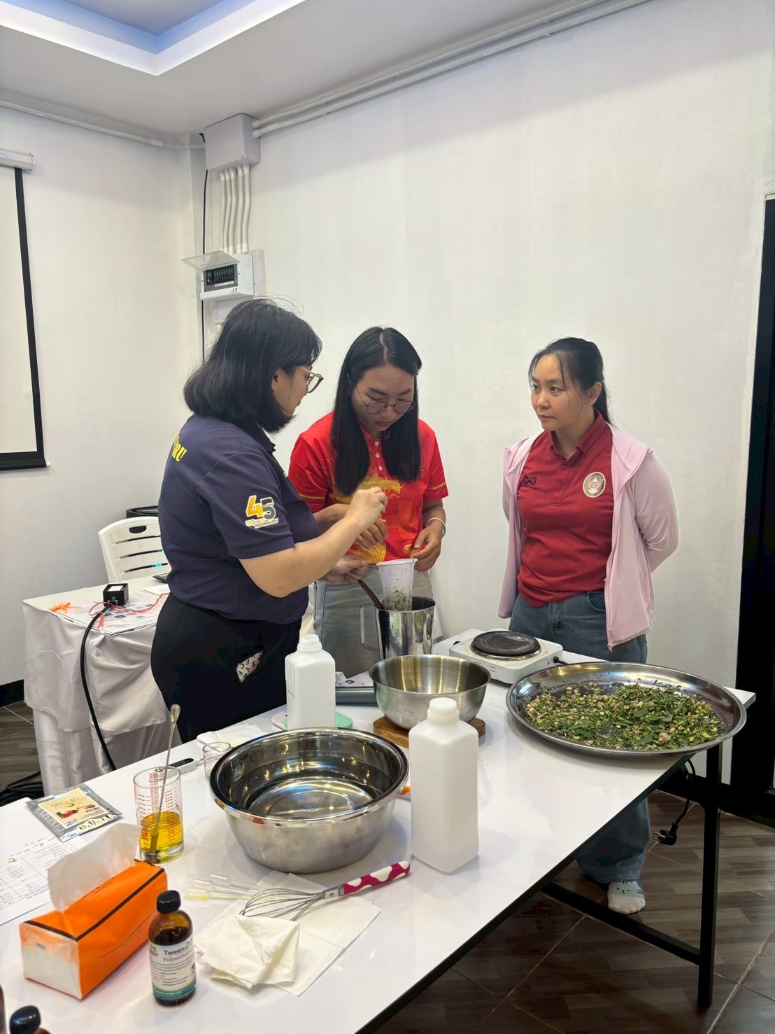 เมื่อวันที่ 16 สิงหาคม 2568 งานคลินิกเทคโนโลยี มหาวิทยาลัยราชภัฏเชียงใหม่ ได้ลงพื้นที่ให้บริการให้คำปรึกษาเรื่อง “การผลิตสเปรย์ตะไคร้หอมมาตรฐานชุมชน” แก่กลุ่มชุมชนบ้านแม่ไคร้และบ้านปางมะกล้วย ณ โลชิ บ้านแม่ไคร้ ตำบลป่าแป๋ อำเภอแม่แตง จังหวัดเชียงใหม่ กิจกรรมดังกล่าวได้รับเกียรติจาก อาจารย์รัฐพรรณ สันติอโนทัย วิทยากรผู้เชี่ยวชาญ ในการให้คำปรึกษา ความรู้และเทคนิคในการพัฒนาผลิตภัณฑ์สมุนไพร เพื่อสร้างมาตรฐานและเพิ่มมูลค่าให้กับสินค้าในชุมชน ตลอดจนเป็นแนวทางในการต่อยอดผลิตภัณฑ์ให้สามารถแข่งขันในตลาดได้อย่างยั่งยืน