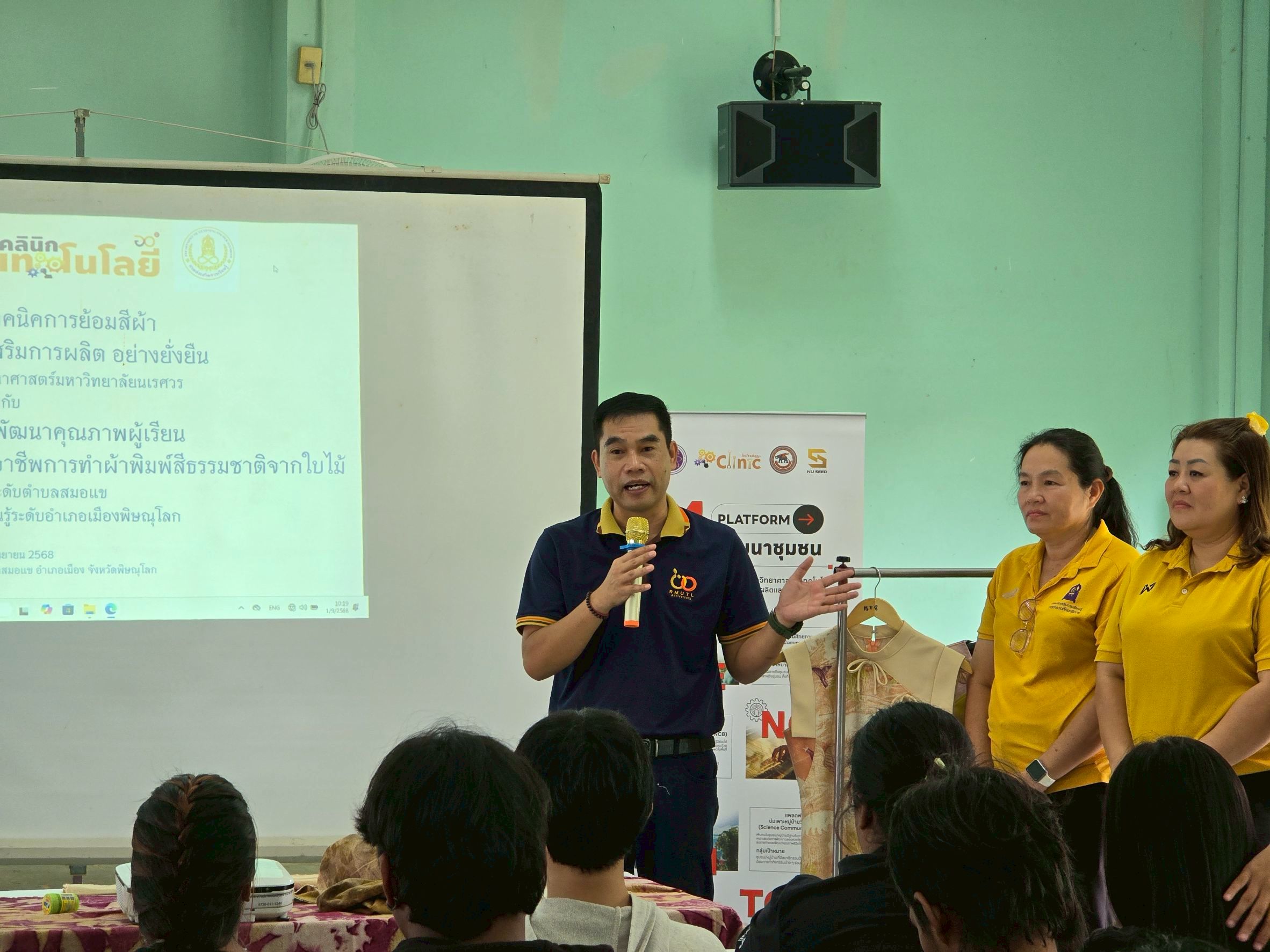 คลินิกเทคโนโลยี มหาวิทยาลัยเทคโนโลยีราชมงคลล้านนา ร่วมกับ สำนักงานพัฒนาวิทยาศาสตร์และเทคโนโลยีแห่งชาติ (สวทช.) ได้ถ่ายทอดเทคโนโลยีและวัตกรรมการย้อมสีธรรมชาติให้กับชุมชนกลุ่มทอผ้าไทลื้อบ้านฝั่งแวน อำเภอเชียงคำ จังหวัดพะเยา ในกิจกรรม การยกระดับผลิตภัณฑ์สิ่งทอพื้นเมืองไทลื้อ ด้วยวิทยาศาสตร์ เทคโนโลยีและนวัตกรรม วิทยากร โดย ผศ.ไพโรจน์ วรพจน์พรชัย บรรยาย เรื่องความสำคัญของการย้อมสีธรรมชาติ และคุณสมบัติของพืชให้สีตามบริบทของชุมชน และการคัดเลือกพืชในชุมชนเพื่อใช้ในการสร้างสีอัตลักษณ์ของกลุ่ม และมีการฝึกปฏิบัติการสกัดสี การย้อมสีจากพืชในท้องถิ่น การใช้สารมอร์แดนท์ชนิดต่างๆ เพื่อปรับเฉดสีให้เหมาะสมตามความต้องการ และการใช้เอนไซม์ ENZease ช่วยเพิ่มประสิทธิภาพในการย้อม รายงานโดย นางสาวอภิญญา ไชยวงค์ วันที่รายงาน 03/04/2568 [18914] |