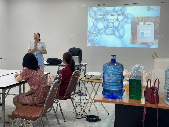 คลินิกเทคโนโลยี มหาวิทยาลัยราชภัฏนครศรีธรรมราช บริการให้คำปรึกษาแก่ผู่ที่สนใจ เรื่อง การทำน้ำยาซักผ้าและน้ำยาปรับผ้านุ่ม ณ สหกรณ์มหาวิทยาลัยราชภัฏนครศรีธรรมราช
