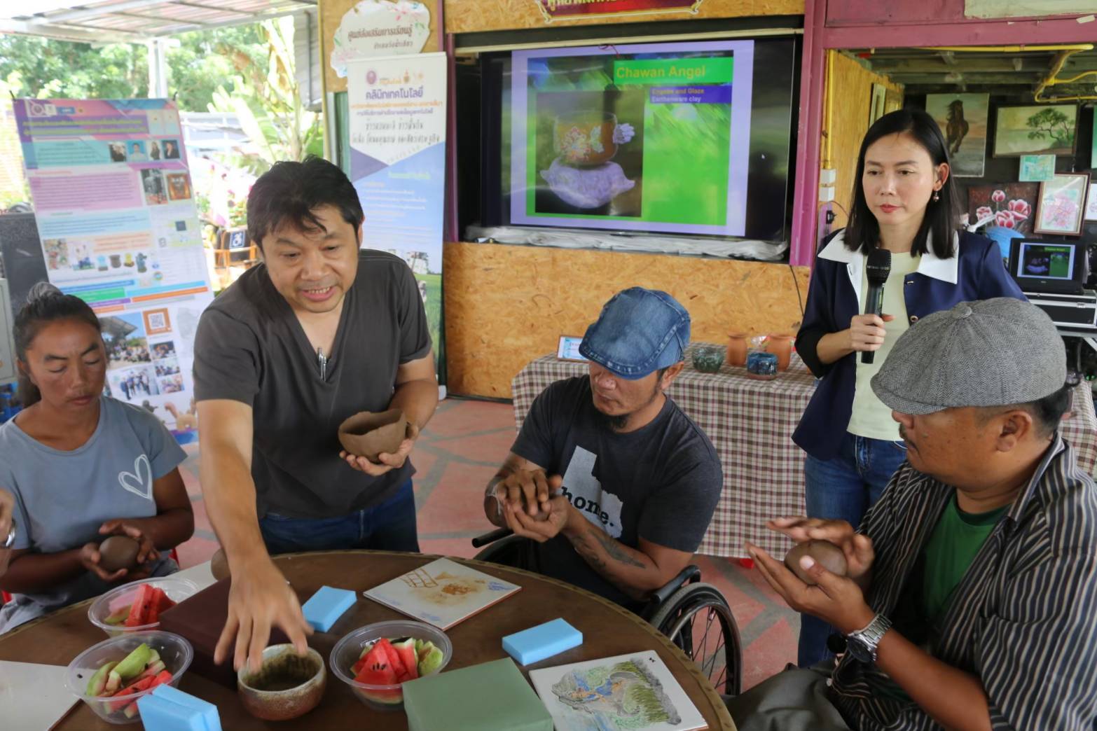 วันเสาร์ที่ 19 กรกฎาคม 2568 งานคลินิกเทคโนโลยี สถาบันวิจัยและพัฒนา มหาวิทยาลัยเทคโนโลยีราชมงคลอีสาน ลงพื้นที่จัดโครงการบริการคำปรึกษาและบริการข้อมูลด้านวิทยาศาสตร์และเทคโนโลยี ประจำปีงบประมาณ 2568 กิจกรรมที่ 2 การให้บริการข้อมูลเทคโนโลยี ครั้งที่ 3 ให้บริการข้อมูลเทคโนโลยี เรื่อง การออกแบบผลิตภัณฑ์เซรามิกของที่ระลึกสำหรับนักท่องเที่ยวจากอัตลักษณ์ชุมชน ณ ศูนย์พัฒนาส่งเสริมอาชีพคนพิการอำเภอวังน้ำเขียว (สมาคมพัฒนาอาชีพคนพิการไทย สาขาวังน้ำเขียว) ตำบลไทยสามัคคี อำเภอวังน้ำเขียว จังหวัดนครราชสีมาโดยได้รับเกียรติจากวิทยากรภายในมหาลัย มทร.อีสาน ดังนี้ 1.ผู้ช่วยศาสตราจารย์เด่น รักซ้อน สาขาการออกแบบอุตสาหกรรม คณะสถาปัตยกรรมศาสตร์และศิลปกรรมสร้างสรรค์ บรรยายเรื่อง ความรู้ทั่วไปเกี่ยวกับการปั้นงานดินเผา 2.ผู้ช่วยศาสตราจารย์จิรวัฒน์ จันทร์สว่าง สาขาการออกแบบอุตสาหกรรม คณะสถาปัตยกรรมศาสตร์และศิลปกรรมสร้างสรรค์ บรรยายเรื่อง เทคนิคการขึ้นรูปด้วยแป้นหมุนไฟฟ้า และ 3.ผู้ช่วยศาสตราจารย์วัชรินทร์ แซ่เตีย สาขาการออกแบบอุตสาหกรรม คณะสถาปัตยกรรมศาสตร์และศิลปกรรมสร้างสรรค์ บรรยายเรื่องเทคนิคการตกแต่งเครื่องปั้นดินเผา โดยมีวัตถุประสงค์เพื่อถ่ายทอดความรู้ทางด้านวิทยาศาสตร์ เทคโนโลยี และนวัตกรรม (วทน.) ให้แก่เกษตรกร ผู้ประกอบการ วิสาหกิจชุมชน และประชาชนทั่วไป ได้นำความรู้ไปใช้ประโยชน์ในการสร้างอาชีพ เพิ่มรายได้ ลดรายจ่าย และสามารถแข่งขันธุรกิจ ทั้งในตลาดภายในประเทศและต่างประเทศได้ รายงานโดย นางสาวจันทร์สุดา เจ็กมะดัน วันที่รายงาน 30/09/2568 [20789] |