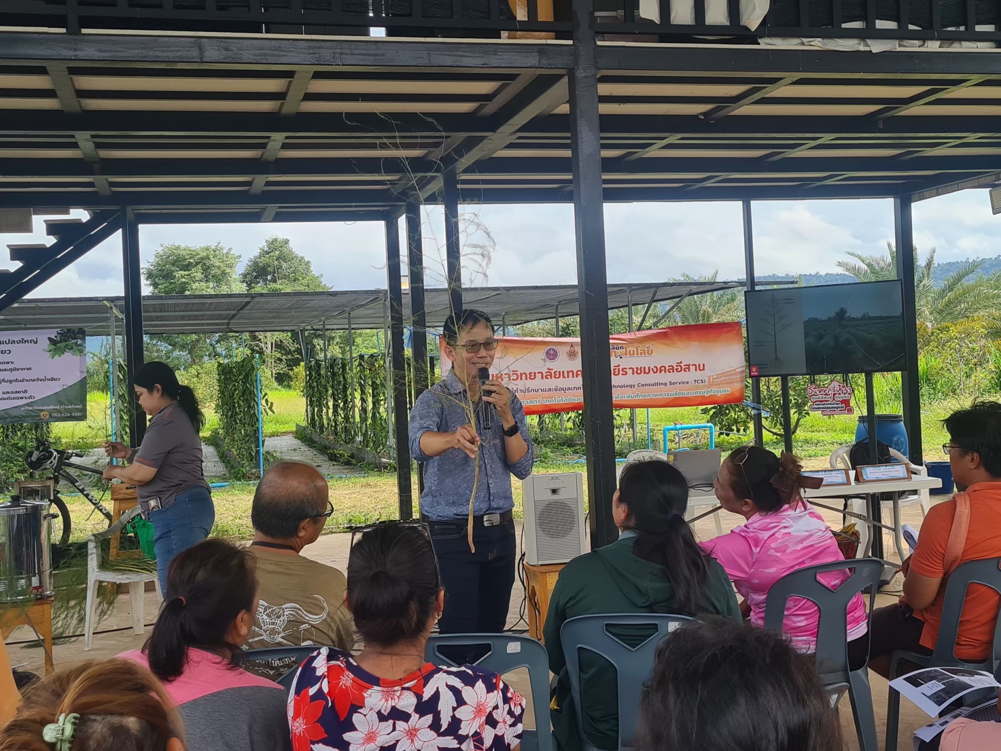 วันพุธที่ 16 กรกฎาคม 2568 งานคลินิกเทคโนโลยี สถาบันวิจัยและพัฒนา มหาวิทยาลัยเทคโนโลยีราชมงคลอีสาน ลงพื้นที่จัดโครงการบริการคำปรึกษาและบริการข้อมูลด้านวิทยาศาสตร์และเทคโนโลยี ประจำปีงบประมาณ 2568 กิจกรรมที่ 3 สำรวจข้อมูลความต้องการและให้บริการคำปรึกษาทางเทคโนโลยี ครั้งที่ 1 ให้บริการคำปรึกษาทางเทคโนโลยี เรื่อง การปลูกและการแปรรูปหญ้าแฝก ณ ศูนย์ส่งเสริมการเรียนรู้ระดับอำเภอโนนไทย กลุ่มปลูกและแปรรูปหญ้าแฝก ห้องประชุมพัฒนเสวนา ศูนย์ส่งเสริมการเรียนรู้ระดับอำเภอโนนไทย ตำบลโนนไทย อำเภอโนนไทย จังหวัดนครราชสีมาโดยได้รับเกียรติจากวิทยากรภายนอก ดังนี้ 1.ดร.นพดล การดี นักวิชาการเกษตร สถานีพัฒนาที่ดินนครราชสีมา บรรยายเรื่อง การปลูก การดูแลรักษา และประโยชน์จากหญ้าแฝก และ 2.ดร.ธีรวัฒน์ ตรีฤกษ์ฤทธิ์ เจ้าของกิจการสวนณัฐธีการเกษตร บรรยาย เรื่อง การแปรรูปจากหญ้าแฝกและการตลาด โดยมีวัตถุประสงค์ เพื่อถ่ายทอดความรู้ทางด้านวิทยาศาสตร์ เทคโนโลยี และนวัตกรรม (วทน.) ให้แก่เกษตรกร ผู้ประกอบการ วิสาหกิจชุมชน และประชาชนทั่วไป ได้นำความรู้ไปใช้ประโยชน์ในการสร้างอาชีพ เพิ่มรายได้ ลดรายจ่าย และสามารถแข่งขันธุรกิจ ทั้งในตลาดภายในประเทศและต่างประเทศได้ รายงานโดย นางสาวจันทร์สุดา เจ็กมะดัน วันที่รายงาน 30/09/2568 [20787] |