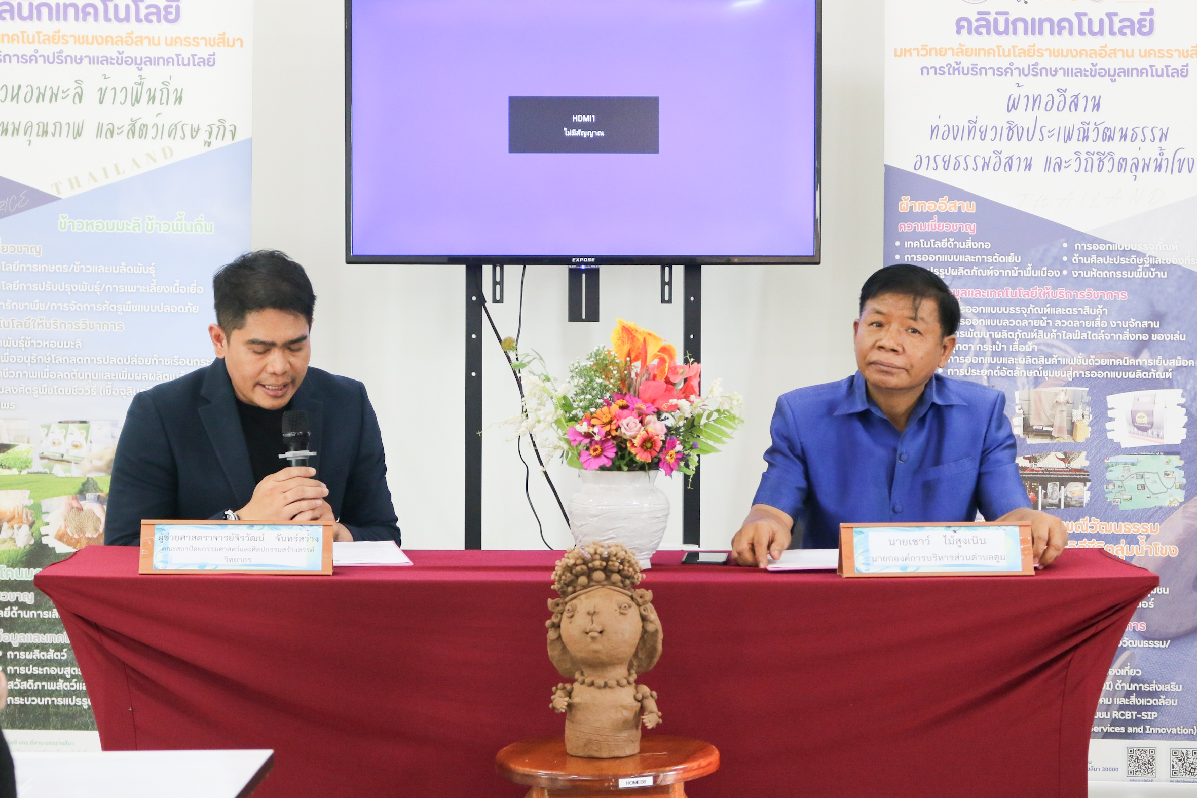งานคลินิกเทคโนโลยี สถาบันวิจัยและพัฒนา มหาวิทยาลัยเทคโนโลยีราชมงคลอีสาน นครราชสีมา เข้าร่วมจัดแสดงผลงานพร้อมให้บริการคำปรึกษาและบริการข้อมูลด้านวิทยาศาสตร์และเทคโนโลยี ในงาน FMT Business Matching พัฒนาเศรษฐกิจฐานราก ภายใต้โครงการสร้างเครือข่ายธุรกิจชุมชนร่วม (Cluster) เพื่อพัฒนาเศรษฐกิจฐานราก ระหว่างวันที่ 22 – 24 กุมภาพันธ์ 2568 ณ ลานอาคารเรียนรวม 100 ปี สิงคเสลิต ชั้น 1 มหาวิทยาลัยเทคโนโลยีราชมงคลอีสาน วิทยาเขตสุรินทร์ โดยได้รับเกียรติจาก นายประภาส ศรีจันทร์เวียง รองผู้ว่าราชการจังหวัดสุรินทร์ และคณะ เข้าชมบูธนิทรรศการคลินิกเทคโนโลยี มหาวิทยาลัยเทคโนโลยีราชมงคลอีสาน นครราชสีมา นำเสนอผลงานโดย รองศาสตราจารย์ ดร.บัณฑิต กฤตาคม รองอธิการบดีฝ่ายวิจัยพัฒนานวัตกรรม และบริการวิชาการ พร้อมด้วยผู้เชี่ยวชาญเทคโนโลยีด้านเกษตรอัจฉริยะสมาร์ทฟาร์ม (Smart Farm)คือ ผู้ช่วยศาสตราจารย์ ดร.สุภาธิณี กรสิงห์ และผู้เชี่ยวชาญเทคโนโลยีด้านอาหารและมาตรฐานอาหารปลอดภัย คือ ผู้ช่วยศาสตราจารย์ ดร.อภิชัย สาวิสิทธิ์ ให้บริการคำปรึกษาและบริการข้อมูลด้านวิทยาศาสตร์และเทคโนโลยี แก่ผู้ประกอบการ วิสาหกิจชุมชน และประชาชนทั่วไป ได้นำความรู้ไปใช้ประโยชน์ ในการสร้างอาชีพ เพิ่มรายได้ และลดรายจ่าย เพื่อให้มีคุณภาพชีวิตที่ดีขึ้น ทั้งนี้ ทางคลินิกเทคโนโลยี สถาบันวิจัยและพัฒนา มหาวิทยาลัยเทคโนโลยีราชมงคลอีสาน นครราชสีมา ได้นำผลงานร่วมจัดแสดงเพื่อให้บริการคำปรึกษาและบริการข้อมูลด้านวิทยาศาสตร์และเทคโนโลยีอีกมากมาย ดังนี้ 1. ผลิตภัณฑ์สิ่งทอจากเส้นใยลำต้นกัญชาผสมกับเส้นใยขนแกะ ได้แก่ ตุ๊กตาล้มลุก กระเป๋า และปกผ้าห่อสมุดโน้ต เป็นผลงานของอาจารย์ ดร.นันทิยา ณ หนองคาย คณะสถาปัตยกรรมศาสตร์และศิลปกรรมสร้างสรรค์ สาขาการออกแบบอุตสาหกรรม 2. ผลิตภัณฑ์ผ้าทอมือและผลิตภัณฑ์เยื่อกระดาษกก-ฟาง ได้แก่ กระเป๋าถือและกระเป๋าสตางค์ จากผ้าไหมอันปรม จังหวัดสุรินทร์ รองเท้าผ้าไท-ยวน จังหวัดนครราชสีมา รองเท้าผ้าฝ้ายย้อมสีคราม จังหวัดสกลนคร และรองเท้าผ้ามัดหมี่ จังหวัดสุรินทร์ เป็นผลงานของผู้ช่วยศาสตราจารย ดร.เมธ์วดี พยัฆประโคน คณะสถาปัตยกรรมศาสตร์และศิลปกรรมสร้างสรรค์ สาขาการออกแบบอุตสาหกรรม 3. ผลิตภัณฑ์ข้าวหอมมะลิ ได้แก่ ผลิตภัณฑ์เสริมอาหารน้ำมันรำข้าวหอมมะลิอินทรีย์ระยะเขียว ชนิดแคปซูล และเครื่องดื่มน้ำข้าวหอมมะลิสกัด สูตรบิวตี้ เสริมคลอลาเจนและไฟเบอร์ เป็นผลงานของผู้ช่วยศาสตราจารย์ ดร.อภิชัย สาวิสิทธิ์ คณะวิทยาศาสตร์และศิลปะศาสตร์ สาขาชีววิทยาประยุ