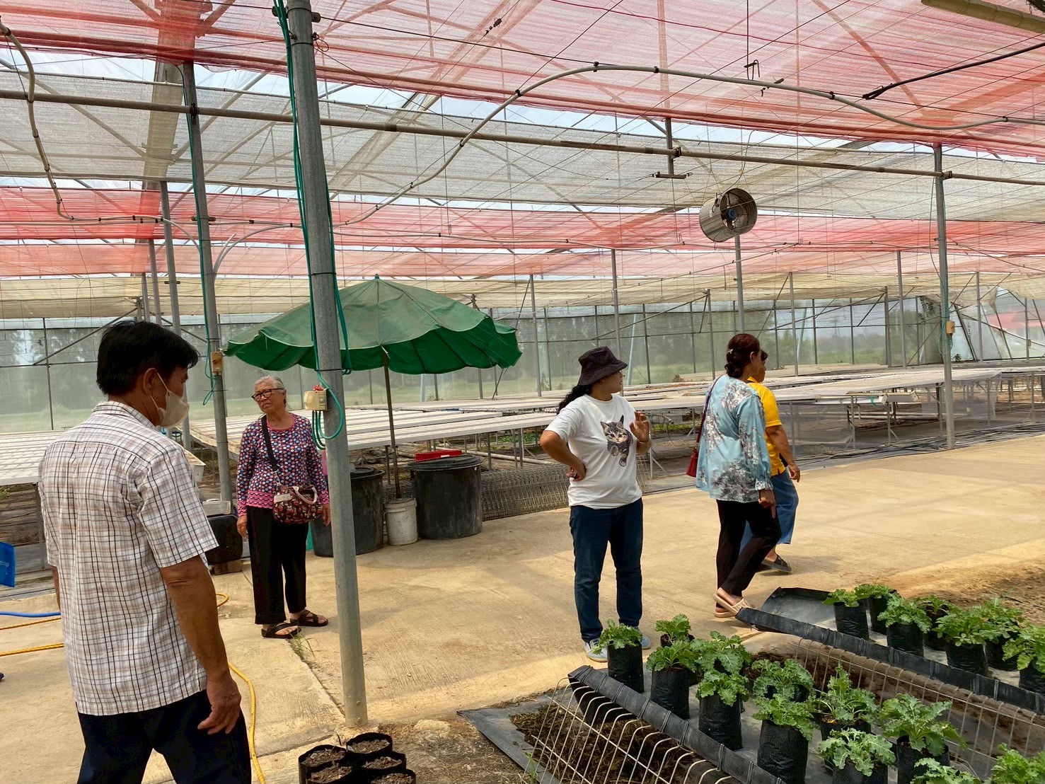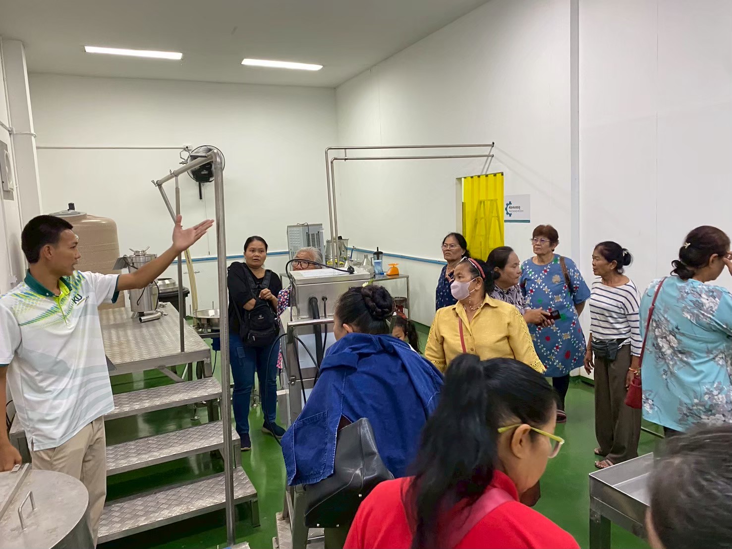 ผู้เข้าอบรมได้เข้าเยี่ยมชมโรงผลิตเครื่องดื่ม รับฟังการบรรยายและซักถามข้อสงสัยเกี่ยวกับการผลิตเครื่องดื่มน้ำนมข้าวโพดหวาน ตรา เคยู กำแพงแสน ซึ่งผู้เข้าอบรมสามารถนำความรู้ที่ได้ไปประยุกต์ใช้ในการออกแบบและพัฒนาสถานที่ผลิตของวิสาหกิจชุมชนฯ นอกจากนี้ยังได้เยี่ยมชมโรงเรือนปลูกผัก ศูนย์เทคโนโลยีการเกษตรครบวงจร (ATC) ที่อยู่ในบริเวณใกล้เคียงกับโรงผลิตเครื่องดื่ม และได้แลกเปลี่ยนความรู้ในการปลูกและดูแลพืชผักกับผู้ดูแลการผลิตพืชผักในโรงเรือน