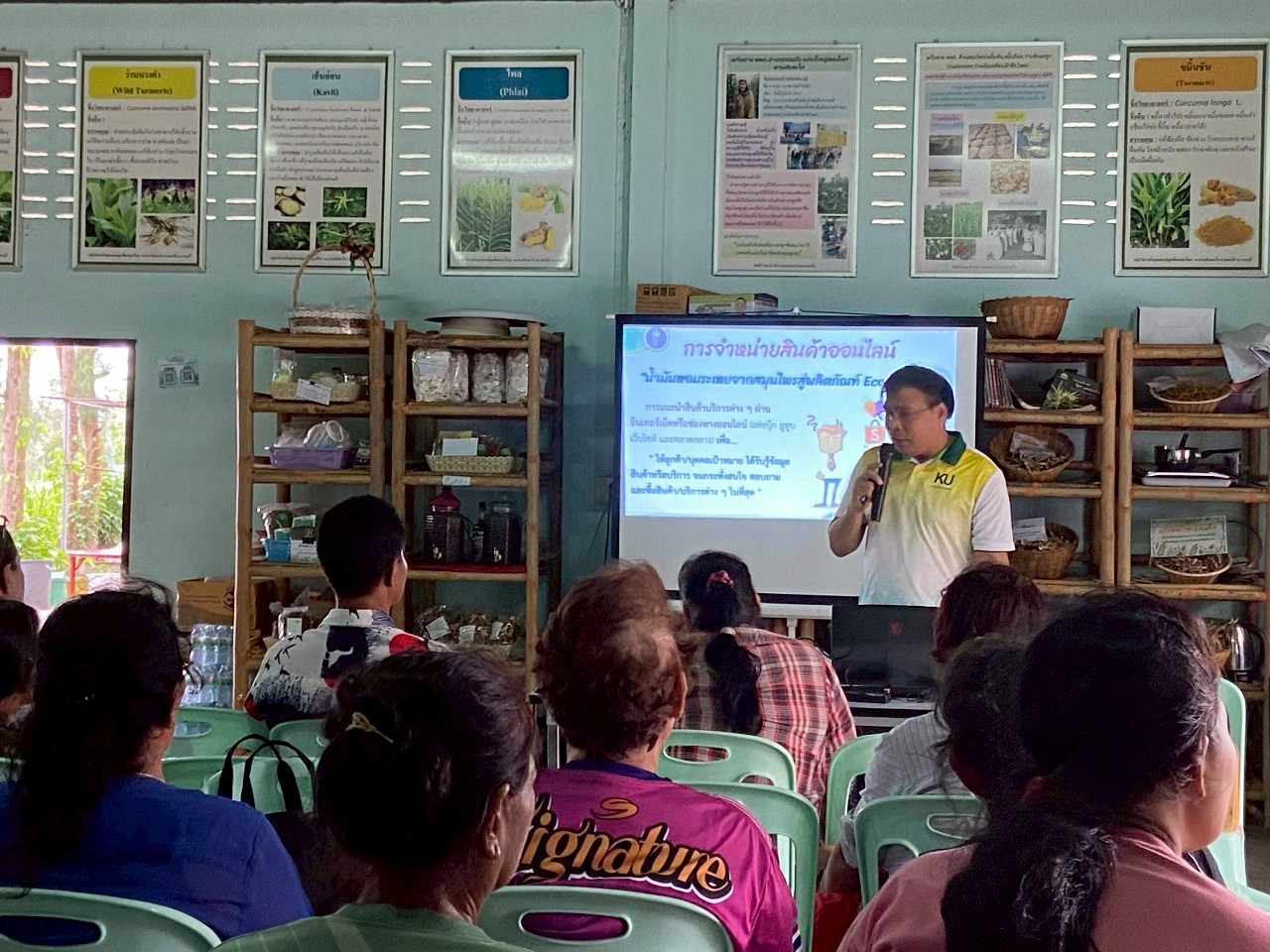 โครงการน้ำมันหอมระเหยจากสมุนไพรสู่ผลิตภัณฑ์ Eco friendly ปีที่ 3 ได้จัดการอบรมถ่ายทอดองค์ความรู้ เรื่อง เทคโนโลยีการจำหน่ายสินค้าออนไลน์ วิทยากรโดย อ.ดร. เกษมสันต์ สกุลรัตน์ อาจารย์ภาควิชาส่งเสริมและนิเทศศาสตร์เกษตร คณะเกษตร กำแพงแสน ผู้เข้าอบรมได้เรียนรู้การสื่อสารทางการตลาด กลยุทธ์การตลาดออนไลน์ ระบบการขนส่งสินค้า แผนการตลาดอินเตอร์เน็ต การสร้างเพจสินค้าและเว็บไซต์ การถ่ายภาพสินค้าด้วยมือถือ และการขายสินค้าในแพลตฟอร์มออนไลน์ เช่น Line Shopping, Instagram และ SHOPEE ซึ่งทำให้ผู้เข้าอบรมเข้าใจขั้นตอนและช่องทางในการนำผลิตภัณฑ์เข้าสู่ตลาดออนไลน์ เพิ่มโอกาสในการขยายฐานลูกค้าและสร้างยอดขายได้เพิ่มขึ้น ตอบสนองต่อพฤติกรรมผู้บริโภคที่นิยมซื้อสินค้าผ่านแพลตฟอร์มออนไลน์