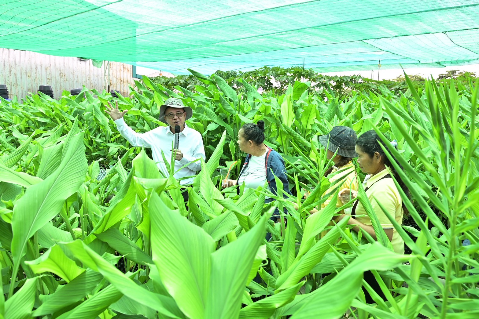 ณ วิสาหกิจชุมชนกลุ่มปลูกพืชสมุนไพรด่านทับตะโก อำเภอจอมบึง จังหวัดราชบุรี