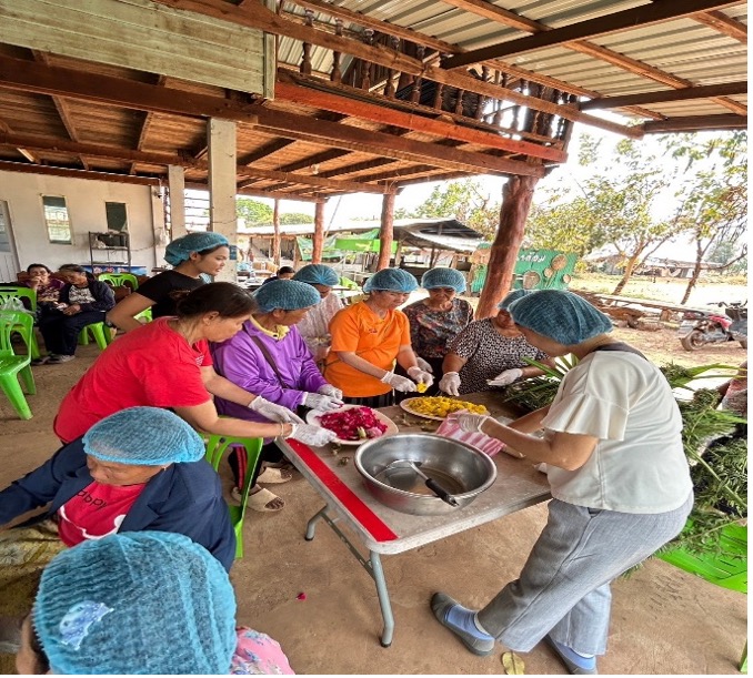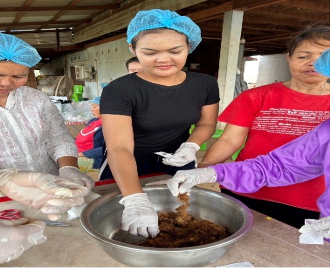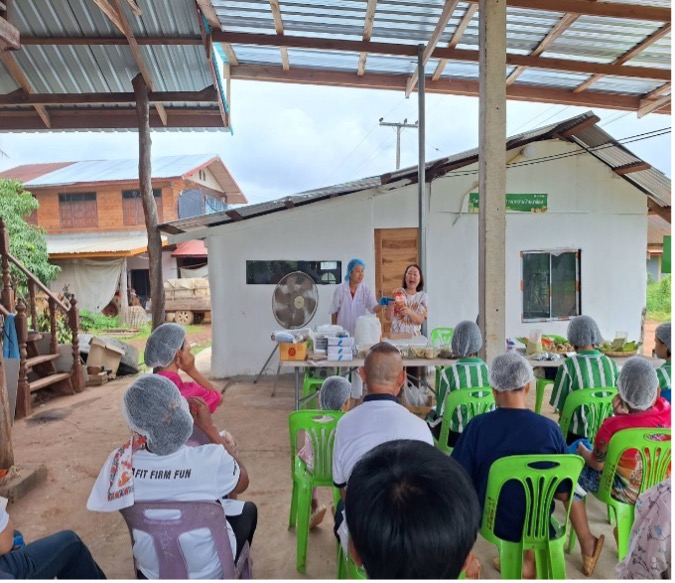กิจกรรมที่ 3 อบรมให้ความรู้หลักสูตรการผลิตข้าวเม่าและผลิตภัณฑ์อาหารแห้งตามมาตรฐาน GMP และแนวทางการผลิตข้าวเม่าให้ได้ อย. จำนวน 11,800 บาท วันที่ 26 พฤษภาคม 2568 กิจกรรมการบรรยาย เรื่อง การผลิตข้าวเม่าและผลิตภัณฑ์อาหารแห้งตามมาตรฐาน GMP 420 โดย นางสาวอาภานันท์ เอี่ยมสำราญ เภสัชกร โรงพยาบาลโพนสวรรค์ จ.นครพนม จำนวนผู้เข้าร่วมอบรม 30 คน ณ ที่ทำการวิสาหกิจชุมชนกลุ่มข้าวเม่าหวานบ้านนาล้อม - ได้ให้ความรู้กับสมาชิกวิสาหกิจชุมชน และได้ตรวจประเมินสถานที่ผลิตข้าวเม่าบรรจุถุงสุญญากาศ และให้คำแนะนำเพื่อปรับปรุงแก้ไขตามหลักเกณฑ์ GMP 420 พร้อมให้คำแนะนำเพื่อจัดทำเอกสารที่เกี่ยวข้อง - กิจกรรมเสวนา/ประชุม แนวทางการผลิตข้าวเม่าให้ได้ อย. และการแก้ไข/ปรับปรุงตามคำแนะนำของเภสัชกร โดย รศ.ดร.พรประภา ชุนถนอม - กำหนดแผนการปฏิบัติงานให้สมาชิกกลุ่มดำเนินการแก้ไขตามข้อแนะนำ โดยเฉพาะห้องบรรจุสินค้าต้องปฏิบัติให้ถูกสุขลักษณะ ส่วนการแยกเมล็ดข้าวออกจากรวง การล้างข้าว การแยกเมล็ดข้าวลีบออก และการคั่วข้าว ได้วางแผนร่วมกันให้เตรียมผลิตในส่วนที่อยู่นอกอาคารผลิต เพราะเป็นสินค้าที่มีความเสี่ยงสูง และเมื่อคั่วข้าวเม่าสุกแล้วจึงลำเลียงเข้าสู่โรงงานเพื่อผึ่งให้เย็น ตำ เอาแกลบออก ชั่งน้ำหนัก และบรรจุ - ได้ร่วมปรึกษาหารือเพื่อหาแนวทางในการผลิตข้าวเม่าให้ได้ อย. โดยการวางแบบแปลนเพื่อกำหนดไลน์การผลิตข้าวเม่า และไลน์การผลิตอาหารแห้ง เช่น ชาข้าวผสมสมุนไพร ตามมาตรฐาน GMP 420 โดยต้องปรับพื้นให้เรียบ สร้างเตาคั่วข้าวเม่าเพื่อลดควันและมีประสิทธิภาพในการใช้พลังงานจากฟืนมากขึ้น โดยออกแบบเป็นเตาชีวมวลที่ใช้อิฐและปูนซีเมนต์ชนิดทนความร้อนสูง วิสาหกิจชุมชนกลุ่มข้าวเม่าหวานบ้านนาล้อม ได้ทำการปรับปรุงอาคารผลิตโดยรื้อหลังคาเดิมออก และเปลี่ยนหลังคาใหม่ เสาไม้ภายในโรงงานได้เปลี่ยนเป็นใช้ปูนซีเมนต์โอบ ส่วนภายนอกอาคารผลิตได้ตัดต้นไม้บริเวณรอบอาคารออก และต่อเติมอาคารผลิตเพื่อขยายโรงงานให้รองรับการเตรียมวัตถุดิบตั้งแต่การแยกเมล็ดข้าวออกจากรวง จนถึงคั่วข้าวเม่า เพื่อป้องกันฝุ่นและควันปนเปื้อนในอาคารผลิต และอยู่ในระหว่างการปรับปรุงอาคารผลิต คาดว่าจะแล้วเสร็จในเดือนสิงหาคม 2568