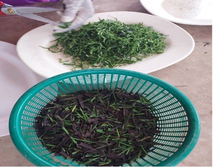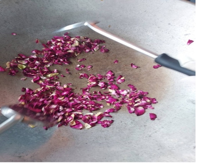 กิจกรรมที่ 4 ออกแบบผลิตภัณฑ์ชาข้าวเม่าและผลพลอยได้ผสมสมุนไพร ออกแบบและพัฒนาผลิตภัณฑ์ชาข้าวเม่า รำและข้าวลีบ ผสมพืชสมุนไพร เช่น ใบเตย กุหลาบ ดาวเรือง ไหมข้าวโพด ขิง บรรจุในซองชาเยื่อกระดาษ และชงเพื่อทดสอบชิม คัดเลือกตำรับที่เหมาะสม พัฒนาผลิตภัณฑ์ชาพืชสมุนไพร และชาข้าวเม่าผสมพืชสมุนไพรบรรเทาอาการเมาค้าง โดยใช้เทคโนโลยีที่เหมาะสมกับชุมชน คั่วในกระทะที่ใช้คั่วข้าวเม่า จนแห้งสนิทหรือมีค่า aw น้อยกว่า 0.6 เพื่อป้องกันเชื้อราและยืดอายุการเก็บรักษา และบรรจุในถุงชา อย่างไรก็ตาม ข้าวเม่าบ้านนาล้อมเริ่มผลิตในช่วงเดือนกรกฎาคม-พฤศจิกายน จึงมีการพัฒนาผลิตภัณฑ์ชาข้าวเม่าในช่วงเดือนกรกฎาคม ส่วนชาสมุนไพรได้มีการพัฒนาตั้งแต่เดือนมีนาคม-สิงหาคม ตามฤดูกาลเก็บเกี่ยวของพืชชนิดนั้นๆ ชาพืชสมุนไพร และชาข้าวเม่าผสมพืชสมุนไพรบรรเทาอาการเมาค้าง ตามตำรับของชุมชนพบว่ามีสมุนไพรหลายชนิดที่ไม่อยู่ในรายการพืชอาหารที่ใช้ทำเครื่องดื่มตามประกาศของกระทรวงสาธารณสุข จึงได้ศึกษาชนิดของพืชและส่วนของพืชตามประกาศกระทรวงสาธารณสุข คือ เนื้อผลมะขามป้อม เนื้อผลมะนาว กลีบเลี้ยงหรือริ้วประดับกระเจี๊ยบแดง เหง้าขิง ใบหรือยอดโหระพา ดอกคำฝอย ซึ่งส่วนใหญ่ไม่สามารถหาได้ในท้องถิ่น ดังนั้น จึงได้พัฒนาผลิตภัณฑ์ที่อยู่ในเกณฑ์และมีวัตถุดิบปริมาณมากในท้องถิ่น โดยพืชเหล่านี้ต้องมีประวัติการนำมาใช้เป็นอาหาร ไม่พบสารพิษธรรมชาติ หรือสารอื่นที่อาจมีอันตรายต่อสุขภาพ ตามที่ระบุในประกาศกระทรวงสาธารณสุข (ฉบับที่ 426) พ.ศ.2564 เท่านั้น จึงได้เลือกออกแบบและพัฒนาผลิตภัณฑ์ใหม่ คือ ชาข้าวเม่าหอมแดง ซึ่งประกอบไปด้วย ข้าวเม่า หอมแดง ใบเตย และใบหม่อน อย่างไรก็ตาม อาจารย์ได้ลงพื้นที่เพื่อนำสูตรผลิตภัณฑ์ต้นแบบไปทดสอบชิมให้กับสมาชิกของวิสาหกิจชุมชนฯ รวมทั้งให้ชุมชนทดลองพัฒนาสูตรผลิตภัณฑ์ต้นแบบ โดยใช้พืชที่ปลูกในท้องถิ่น กิจกรรมที่ 5 อบรมถ่ายทอดเทคโนโลยีการทำอาหารแห้งด้วยตู้อบชีวมวล ทีมอาจารย์ได้ปรึกษากับสมาชิกวิสาหกิจชุมชนฯ เพื่อร่วมกันออกแบบเตาชีวมวล ให้มีประสิทธิภาพดีกว่าเตาคั่วข้าวเม่าแบบเดิม และร่วมกันออกแบบตู้อบพลังงานชีวมวลเพื่อใช้ประโยชน์จากฟืน ถ่านที่เหลือจากการคั่วข้าวเม่า รวมทั้งเศษชีวมวลต่างๆ เช่น ตอซังข้าว เพื่อใช้ในการอบแห้งชาหรือผลิตภัณฑ์อาหารแห้งต่างๆ เมื่อออกแบบและจัดทำเตาพลังงานชีวมวลแล้ว นำไปอบรมถ่ายทอดเทคโนโลยีการทำแห้งข้าวเม่าในวันที่ 29 สิงหาคม พ.ศ. 2568 ให้กับสมาชิกวิสาหกิจชุมชน ณ วิสาหกิจชุมชนกลุ