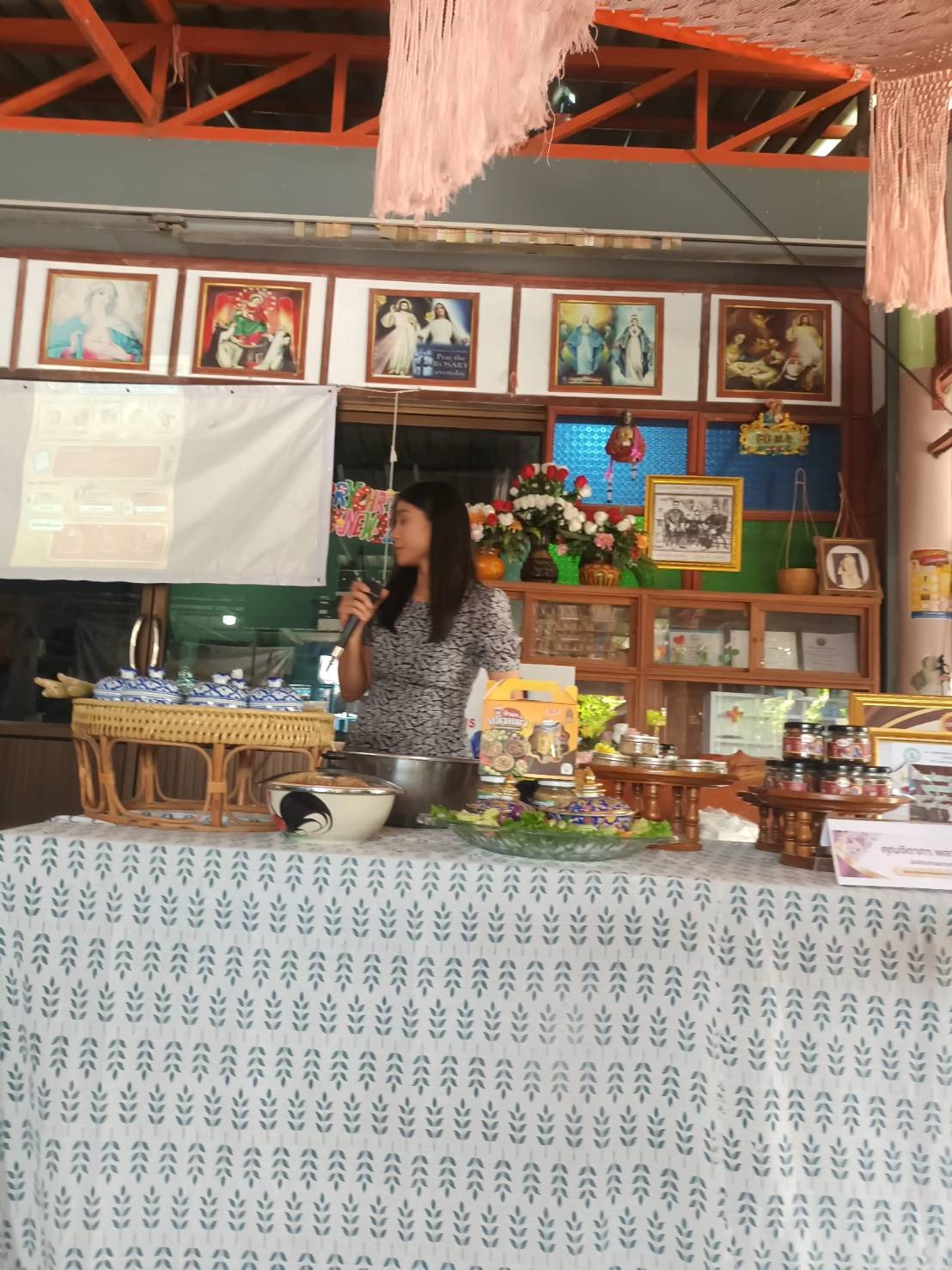 กิจกรรมที่ 5.4บรรยายให้ความรู้ ภายใต้หัวข้อ: แนวทางการยกระดับผลิตภัณฑ์ปลาหมำสู่มาตรฐานผลิตภัณฑ์ชุมชน (มผช.) โครงการได้จัดกิจกรรมบรรยายให้ความรู้แก่สมาชิกวิสาหกิจชุมชนปลาหมำป้าพร ณ ศูนย์เรียนรู้บ้านแม่ประจักษ์ หัตถกรรมเปลญวน – ปลาหมำ อำเภอสองพี่น้อง จังหวัดสุพรรณบุรี เพื่อส่งเสริมให้สมาชิกวิสาหกิจชุมชนตระหนักถึงความสำคัญของการพัฒนาคุณภาพสินค้าให้ได้มาตรฐานผลิตภัณฑ์ชุมชน (มผช.) โดยได้รับเกียรติจากคุณจิดาภา พลายละมูล นักวิชาการมาตรฐานจากสำนักงานอุตสาหกรรมจังหวัดสุพรรณบุรี เป็นวิทยากรบรรยายให้ความรู้และให้คำปรึกษาเกี่ยวกับกระบวนการยกระดับผลิตภัณฑ์ปลาหมำสู่การรับรองมาตรฐาน มผช. ซึ่งสาระสำคัญของการบรรยายประกอบด้วย