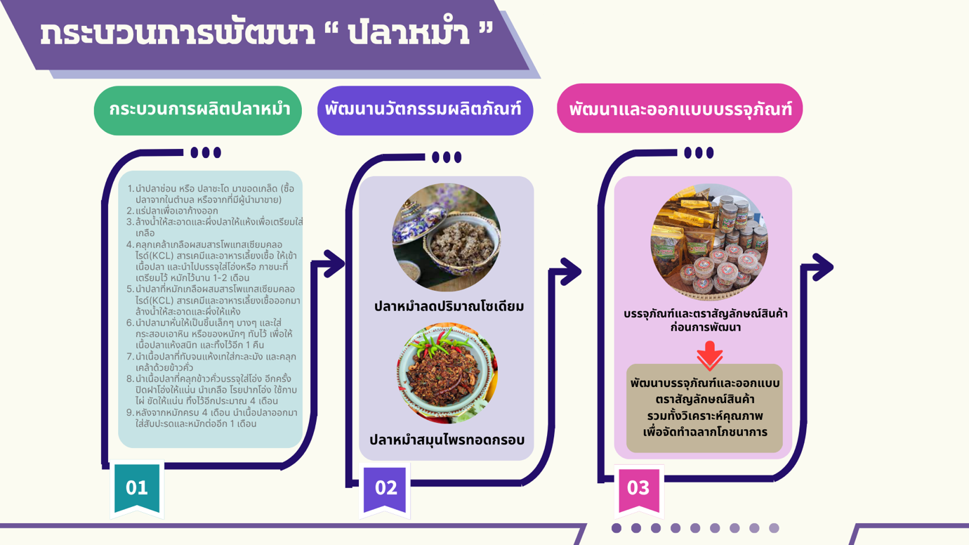 2568 การพัฒนานวัตกรรมอาหารประจำถิ่น "ปลาหมำ" สู่การท่องเที่ยวเชิงอาหารสุขภาพอย่างสร้างสรรค์ของวิสาหกิจชุมชนปลาหมำป้าพร จังหวัดสุพรรณบุรี 0