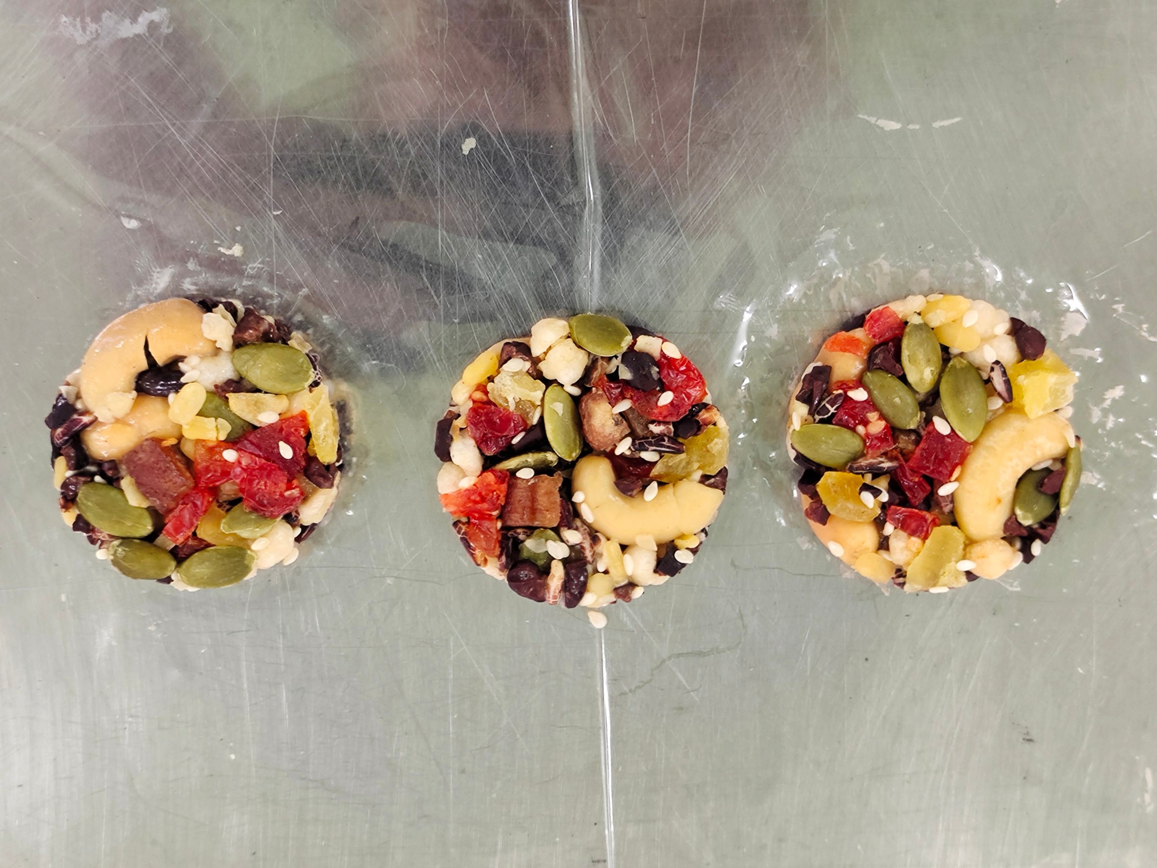 กิจกรรมที่ 3 การพัฒนาผลิตภัณฑ์จากโกโก้ เดือนมิถุนายน - เดือนสิงหาคม 2568 ผู้ช่วยศาสตราจารย์ ดร.ดือนรุ่ง เบญจมาศ และเจ้าหน้าที่วิจัยพัฒนาผลิตภัณฑ์ จากศูนย์วิจัยและพัฒนานวัตกรรมสินค้าเกษตร และอาหารภาคตะวันออก มหาวิทยาลัยราชภัฏรำไพพรรณี ได้วางแผนดำเนินการสร้างผลิตภัณฑ์ต้นแบบจากโกโก้ คือ ผลิตภัณฑ์โกโก้นิบส์โฮลเกรนบาร์ ซึ่งผู้ประกอบการได้เลือกพัฒนาผลิตภัณฑ์โกโก้นิบส์โฮลเกรนบาร์ (โกโกนิบส์ผสมถั่วและธัญพืชอัดแท่ง) ซึ่งเน้นกลุ่มเป้าหมาย คือ คนที่รักสุขภาพในวัยทำงานขึ้นไป ชูภาพลักษณ์สินค้าในความเป็น สารต้านอนุมูลอิสระสูง มีฟลาโวนอยด์สูง และการนำเสนอสินค้าในรูปแบบ plant base ผ่านกระบวนการทำความ สะอาดและแปรรูปน้อยที่สุด (minimalprocess) เพื่อให้คงสภาพความเป็นวัตถุดิบ และคงคุณค่าของพืชตามธรรมชาติ ซึ่งผู้ประกอบการต้องการนำวัตถุดิบไทยๆมาทำเป็นส่วนผสม และให้พลังงานในระดับที่สามารถทดแทนมื้ออาหารได้