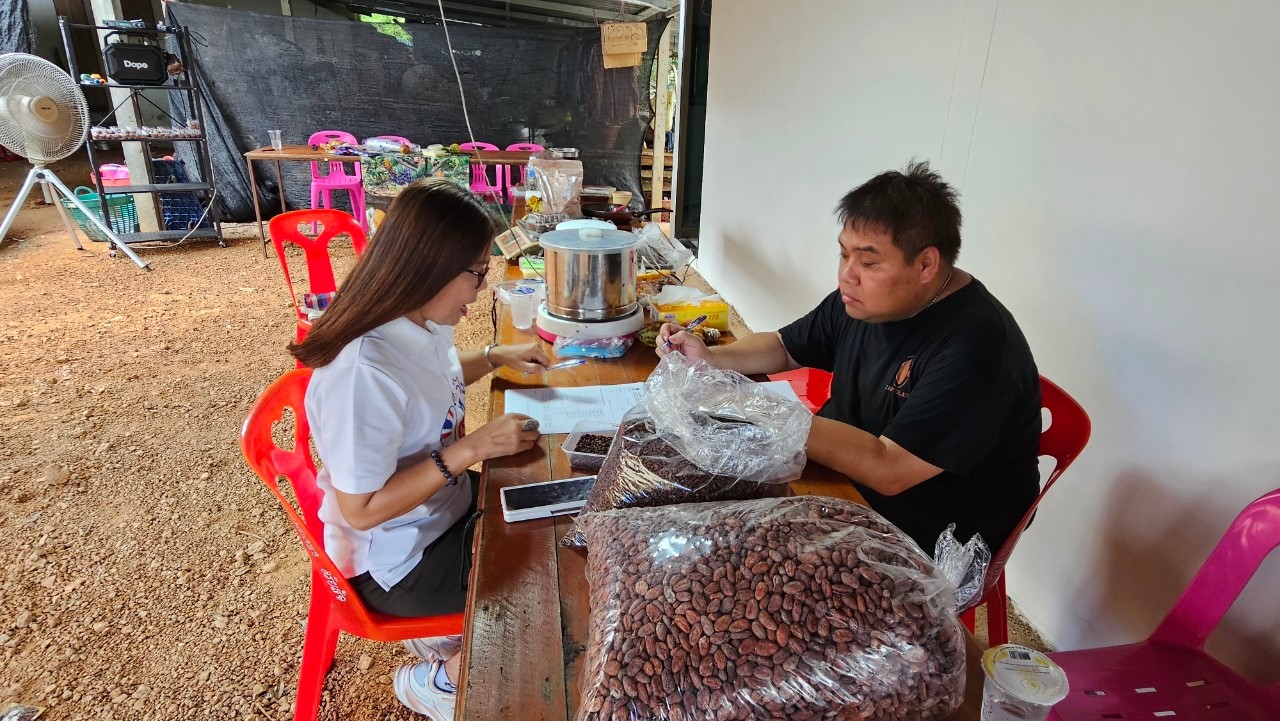 กิจกรรมที่ 4 ดำเนินการถ่ายทอดเทคโนโลยีการแปรรูปโกโก้ จากผลิตภัณฑ์ต้นแบบ ผู้ช่วยศาสตราจารย์ ดร.ดือนรุ่ง เบญจมาศ เป็นวิทยากรการถ่ายทอดความรู้ด้านการแปรรูปผลิตภัณฑ์โกโก้นิบส์โฮลเกรนบาร์ แก่นายสุพักร์ ตั๊นวิเศษ ประธานกลุ่ม และสมาชิก เพื่อให้ผู้ประกอบการทราบขั้นตอน วิธีการแปรรูป และการปรับปริมาณสารให้ความหวาน และส่วนผสมอื่นๆ ได้ตามความชอบของกลุ่มลูกค้า การเลือกบรรจุภัณฑ์ที่เหมาะสม ภายหลังจากการถ่ายทอดให้ความรู้ จะมีขั้นการทดสอบความชอบของผู้บริโภค เพื่อให้ผู้บริโภคทดลองผลิตภัณฑ์เพื่อประเมินความชื่นชอบ และข้อเสนอแนะ ในการปรับปรุงสูตรในลำดับถัดไป การจัดอบรมจัดในวันที่ 19 กันยายน 2568 ณ ศูนย์วิจัยและพัฒนานวัตกรรมสินค้าเกษตร และอาหารภาคตะวันออก มหาวิทยาลัยราชภัฏรำไพพรรณี รายงานโดย นายคฑาวุธ สว่างดี วันที่รายงาน 30/09/2568 [20705] |