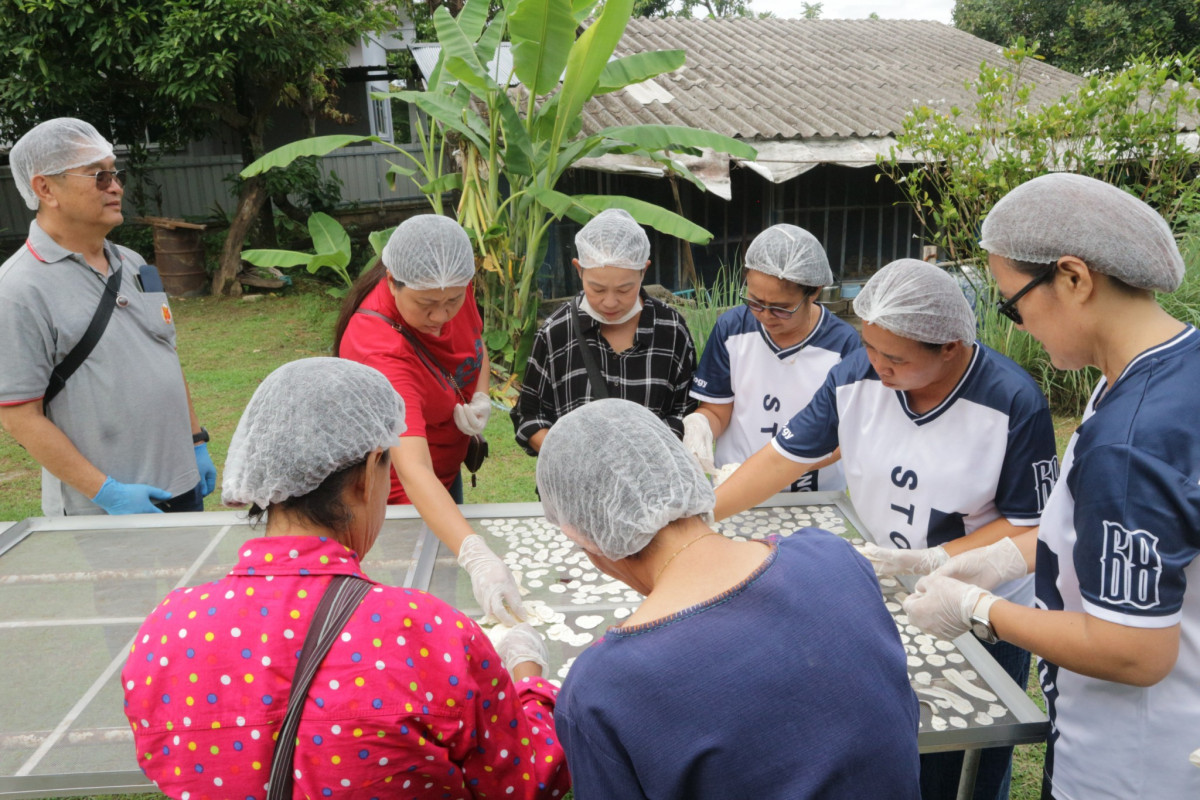 - ถ่ายทอดองค์ความรู้เชิงปฏิบัติการด้านการพัฒนาผลิตภัณฑ์ชุมชนเพื่อสร้างมูลค่าเพิ่มสินค้าเกษตรท้องถิ่น ด้วยศาสตร์การทำลูกประคบสมุนไพรและแนะนำการใช้ประโยชน์เพื่อดูแลสุขภาพในครัวเรือน