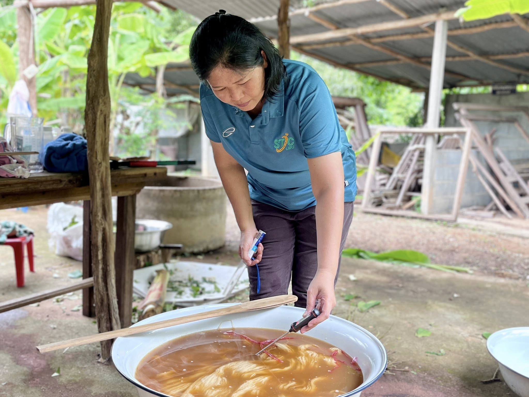 23 มิถุนายน 2568 การอบรมเชิงปฏิบัติการ ในหัวข้อ “การตรวจสอบคุณภาพผ้าทออย่างง่าย” ตามมาตรฐานผลิตภัณฑ์ชุมชน (มผช.) ประเภทผ้าทอ อาทิ ผ้าขิด (มผช.15/2557) ผ้ายกดอก (มผช.63/2557) ผ้ามัดหมี่ (มผช.17/2557) ผ้าจก (มผช.48/2557) และผ้าทอลายขัด (มผช.18/2557) มีรายการที่ใช้ทดสอบตาม มผช. ได้แก่