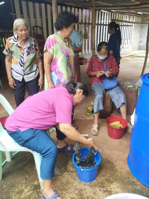ผล ถ่ายทอดองค์ความรู้และเทคโนโลยีให้แก่เกษตรกรและกลุ่มทอผ้าจำนวน 123 คน (เกินกว่าเป้าหมาย 45 คน) ถ่ายทอดเทคโนโลยีหลัก 4 เรื่อง ได้แก่ 1. การย้อมสีธรรมชาติเส้นใย 2. การทดสอบคุณภาพผ้าทออย่างง่าย 3. การออกแบบเฉดสีและการทอ 4. การบริหารจัดการการผลิตผ้าทอ มีการจัดตั้งคณะกรรมการเครือข่ายกลุ่มทอผ้าเพื่อบริหารจัดการการผลิต กิจกรรมขอการรับรอง ตรานกยูงพระราชทาน นกยูงเขียว จากศูนย์หม่อนไหมเฉลิมพระเกียรติแพร่ ผู้เข้าร่วมอบรมมีความพึงพอใจในกิจกรรม 93.5%