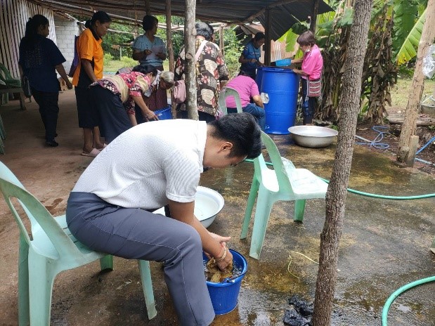31 สิงหาคม 2568 เริ่มต้นจากการคัดเลือกแม่สีหรือสีหลักที่ต้องการนำมาใช้ อ้างอิงจากวัตถุสีย้อมในพื้นที่ เช่น สีเขียวจากใบกระท้อน สีแดง/ชมพูจากแก่นไม่ฝางหรือครั่ง สีเหลืองจากแก่นขนุน หรือใบสมอ หลังจากได้สีหลักแล้ว จึงนำมาไล่เฉดสีจากการลงสารช่วยย้อมหรือมอร์แดนท์ต่างๆเพื่อให้เกิด “เฉดสี” ที่มีความหลากหลาย ทั้งสีเข้ม อ่อน ดิบ หรือหม่น ให้กลุ่มทอผ้าได้เรียนรู้ถึงความสำคัญของการไล่เฉดสีต่อการสร้างบรรยากาศของผืนผ้า เพราะสามารถถ่ายทอดอารมณ์ ความรู้สึก และความหมายเชิงสัญลักษณ์ได้ เช่น เฉดสีเข้มมักสื่อถึงความสงบ สุขุม เฉดสีอ่อนให้ความรู้สึกอ่อนโยน สดชื่น หรือเฉดสีสดใสใช้เพื่อเน้นความโดดเด่นและความมีชีวิตชีวา รวมทั้งมีการทำ work shop การออกแบบลวดลาย ของชิ้นงาน และการให้สีผลิตภัณฑ์ของแต่ละกลุ่ม รายงานโดย นางสาวบุญวรานันท์ สุขเกิด วันที่รายงาน 30/09/2568 [20496] |