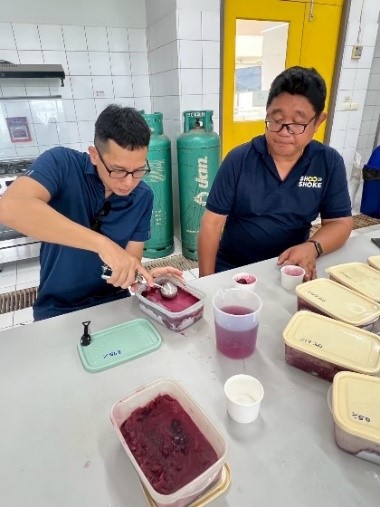 กิจกรรมที่ 2 ดำเนินการทดสอบสารคงตัวในอาหาร (Guar gum) ที่เหมาะในการผลิตไอศรีมพิลังกาสา รายงานโดย ผศ.ดร.ทัศวัลย์ คัมภีระพันธุ์ วันที่รายงาน 30/09/2568 [20732] |