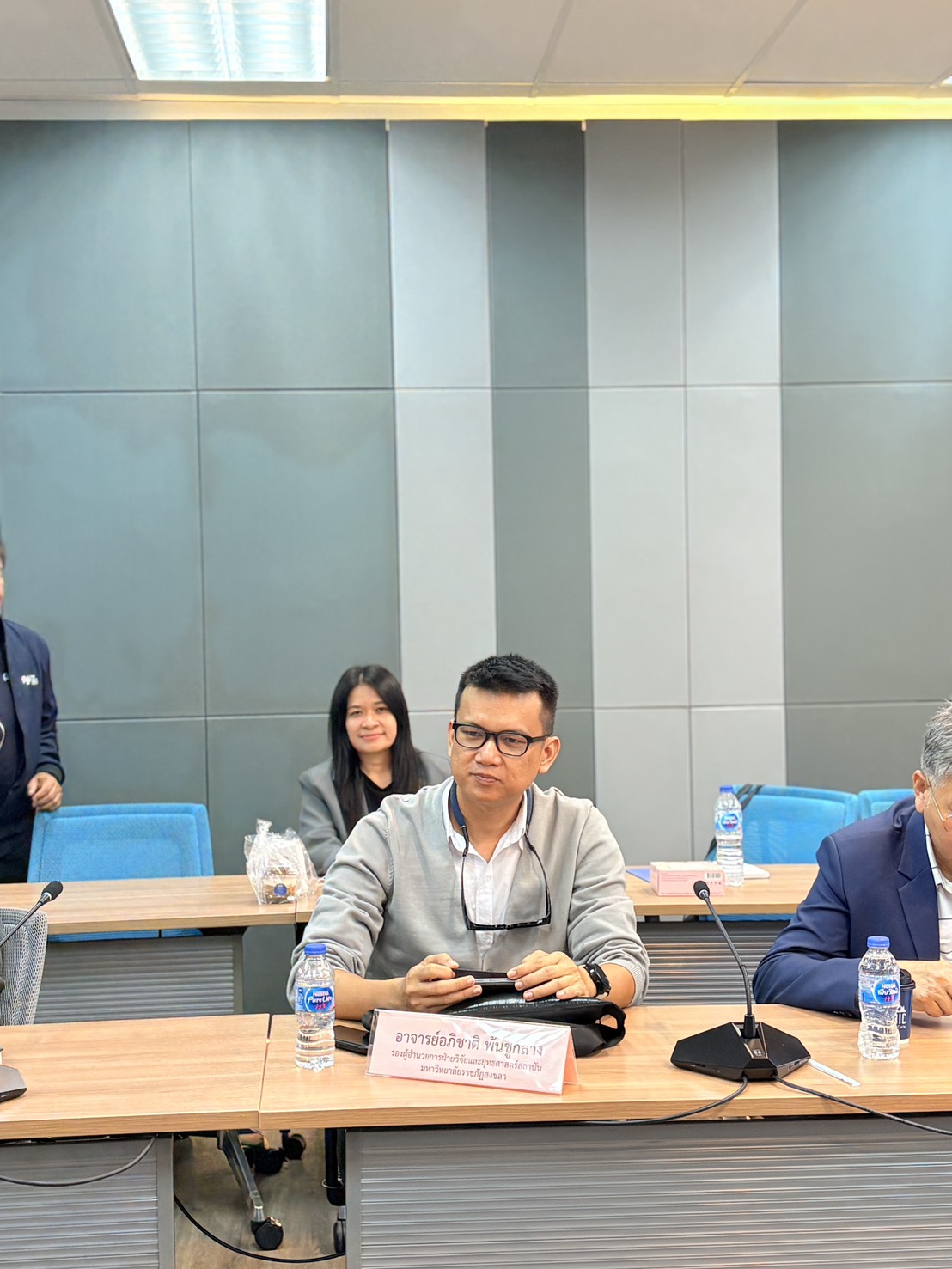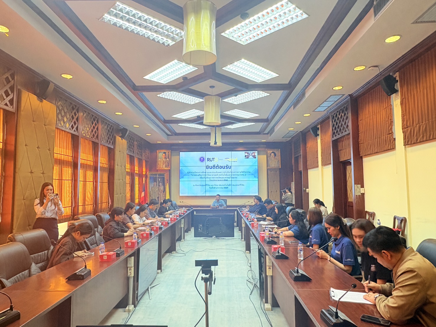 วันที่ 13 กุมภาพันธ์ 2569 คลินิกเทคโนโลยี มหาวิทยาลัยราชภัฏสงขลา นำโดย ผู้ช่วยศาสตราจารย์อภิชาติ พันชูกลาง (รองผู้อำนวยการสถาบันวิจัยและพัฒนาฝ่ายวิจัยและยุทธศาสตร์สถาบัน) รองผู้อำนวยการคลินิกเทคโนโลยี พร้อมด้วย นางสาวเกศสุพร มากสาขา ผู้จัดการคลินิกเทคโนโลยี และนางสาวรามาวดี ปั้นทอง ผู้ประสานงานคลินิกเทคโนโลยี เข้าร่วมการตรวจเยี่ยมของผู้ตรวจราชการกระทรวงฯ และรายงานผลการขับเคลื่อนงานด้าน อววน. ในพื้นที่จังหวัดสงขลา ณ ห้องประชุม Science Stone อุทยานวิทยาศาสตร์ มหาวิทยาลัยสงขลานครินทร์ ตำบลคอหงส์ อำเภอหาดใหญ่ จังหวัดสงขลา โดยนำเสนอข้อมูลเกี่ยวกับการดำเนินงานของมหาวิทยาลัยราชภัฏสงขลา และการดำเนินงานโครงการบริการให้คำปรึกษาและข้อมูลเทคโนโลยี (คลินิกเทคโนโลยี) ในปีงบประมาณ พ.ศ. 2568 รายงานโดย นางสาวเกศสุพร มากสาขา วันที่รายงาน 05/03/2569 [21129] |