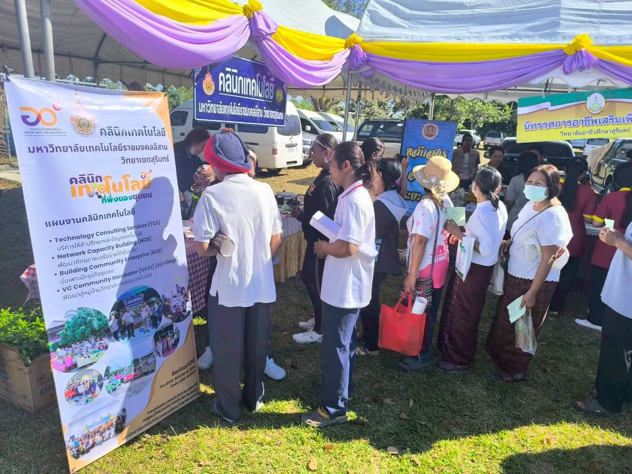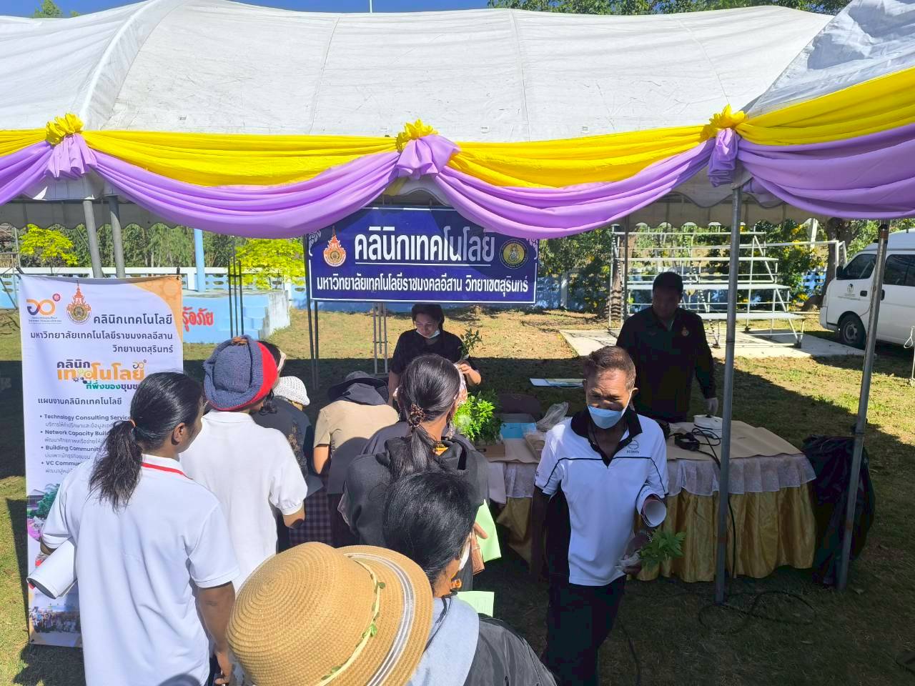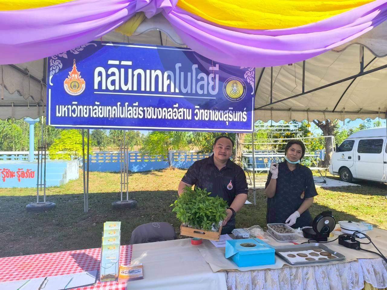 วันที่ 17 ธันวาคม 2568คลินิกเทคโนโลยี มหาวิทยาลัยเทคโนโลยีราชมงคลอีสาน วิทยาเขตสุรินทร์ ได้เข้าร่วมโครงการคลินิกเกษตรเคลื่อนที่ในพระราชานุเคราะห์ฯ ประจำปีงบประมาณ พ.ศ. 2569 ไตรมาสที่ 1 ณ โรงเรียนบ้านโสมน ตำบลบัวโคก อำเภอท่าตูม จังหวัดสุรินทร์ โดยได้ออกจัดนิทรรศการบริการให้คำปรึกษาให้ความรู้เรื่องการทำขนมวาฟเฟิลแป้งกรอบจากแป้งข้าว การจัดอบรมหลักสูตรระยะสั้น โดยมีเจ้าหน้าที่ประจำบูท นางณิชาภา สารธิยากุล นายชัชวาลย์ ไทยยิ่ง ที่ให้คำปรึกษาและรับบริการให้กับเกษตรกรผู้มาเยี่ยมชมงานครั้งนี้ รายงานโดย นายชัชวาลย์ ไทยยิ่ง วันที่รายงาน 23/01/2569 [21005] |