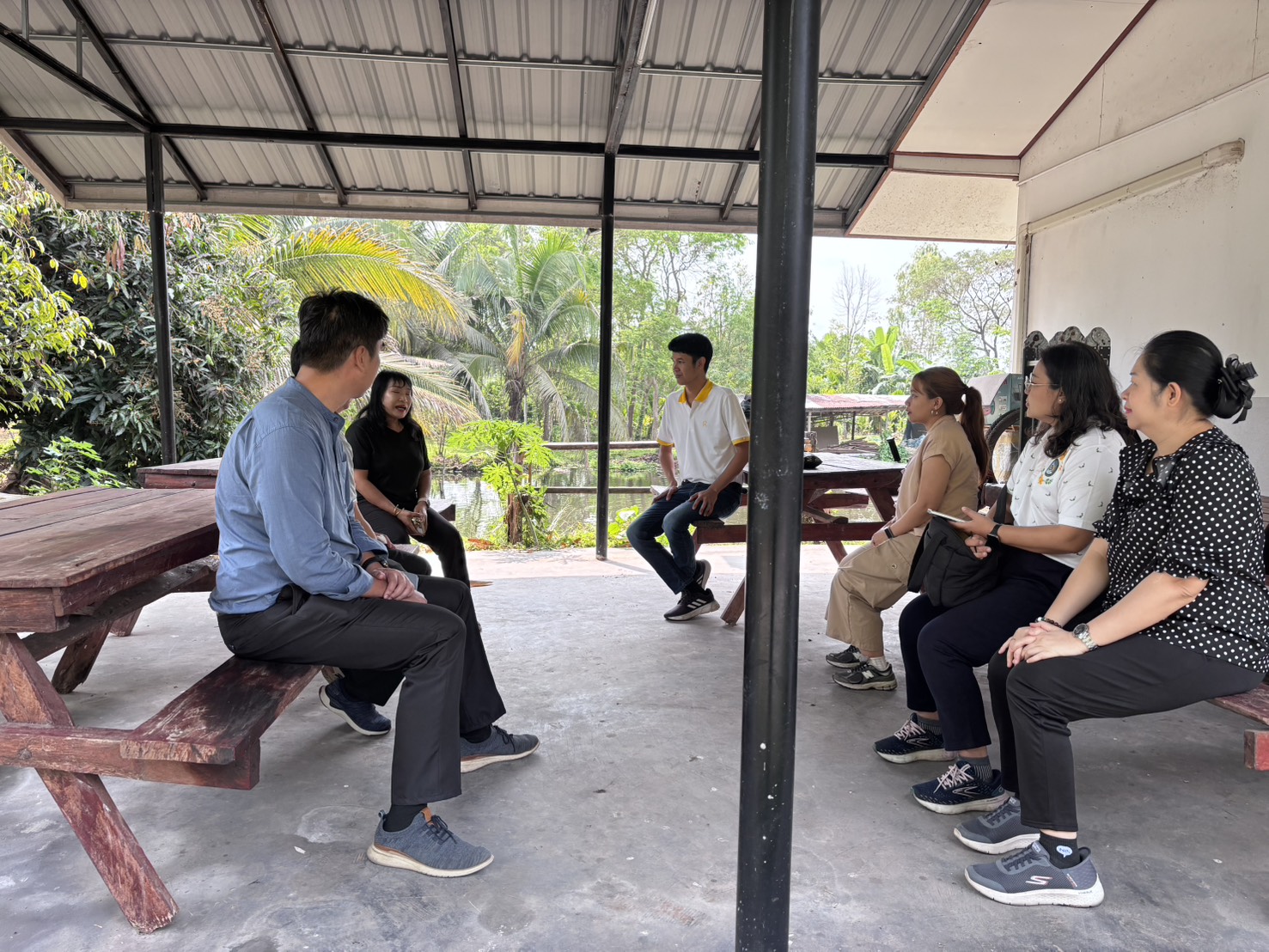 โดยในการลงพื้นที่ครั้งนี้ ทีมวิจัยได้เดินสำรวจเพื่อประเมินศักยภาพและความพร้อมของของพื้นที่เดิมที่มีขนาดกว้างกว่า 20 ไร่ โดยพื้นที่ดังกล่าวประกอบไปด้วยทรัพยากรที่หลากหลาย เช่น สวนป่ากฤษณา สวนมะพร้าว สวนมะม่วงหิมพานต์ สวนผักและผลไม้ สระน้ำ ไปจนถึงอาคารสำหรับจัดกิจกรรม ทำให้ทีมงานสามารถวิเคราะห์จุดแข็งและจุดที่ต้องปรับปรุงสำหรับการจัดทำเส้นทางสุขภาพได้อย่างแม่นยำ