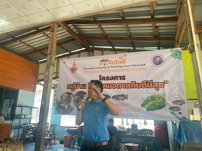 กิจกรรมที่ 3สร้างจิตสำนึกที่ดีของการอนุรักษ์ทรัพยากรในชุมชน โดยการลดใช้ยา สารเคมี จำนวนผู้รับบริการ : 50คน งบประมาณที่ใช้ : 29,900 บาท วิทยากร : อาจารย์สุภภณ พลอยอิ่ม : ผศ.จารวี เลิกสายเพ็ง : อาจารย์ประวัติ ปรางสุรางค์ : อาจารย์อพิศรา หงส์หิรัญ ผลการดำเนินงาน : สมาชิกได้นำองค์ความรู้ด้านการผลิตอาหารปลาต้นทุนต่ำที่มีคุณค่าทางโภชนาการครบถ้วน และเทคนิคการเลี้ยงที่ถูกต้องแล้ว สิ่งสำคัญที่เกิดขึ้นตามมาคือการสร้าง จิตสำนึกที่ดีในการอนุรักษ์ทรัพยากรในชุมชน เพื่อให้ตระหนักถึงความสำคัญของการเลี้ยงปลาโดยไม่พึ่งพายาและสารเคมีมากเกินความจำเป็น เนื่องจากเข้าใจว่าการใช้สารเคมีและยาปฏิชีวนะในระยะยาวอาจก่อให้เกิดผลเสียต่อปลา คุณภาพน้ำ สิ่งแวดล้อม รวมถึงผู้บริโภค