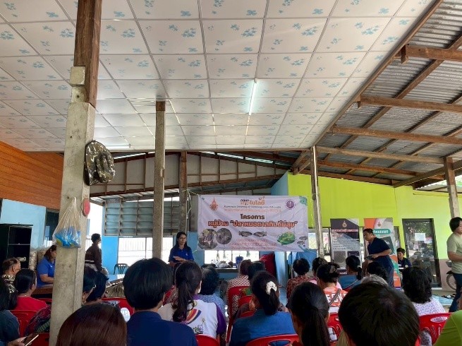 กิจกรรมที่ 4 ติดตามและสรุปผลการดำเนินโครงการ จำนวนผู้รับบริการ : 50คน งบประมาณที่ใช้ : 15,000 บาท วิทยากร : ผศ.จารวี เลิกสายเพ็ง ผลการดำเนินงาน : สมาชิกในชุมชนได้รับองค์ความรู้จากโครงการ ทั้งในภาคทฤษฎีและภาคปฏิบัติ เช่น การเพาะขยายพันธุ์ การจัดทำสูตรอาหารปลาต้นทุนต่ำ เทคนิคการให้อาหารที่เหมาะสม การจัดการคุณภาพน้ำ และการลดการใช้สารเคมีในการเลี้ยงปลา สมาชิกสามารถนำความรู้เหล่านี้ไป ต่อยอด ให้สอดคล้องกับบริบทและทรัพยากรที่ตนเองมีอยู่จริงในพื้นที่