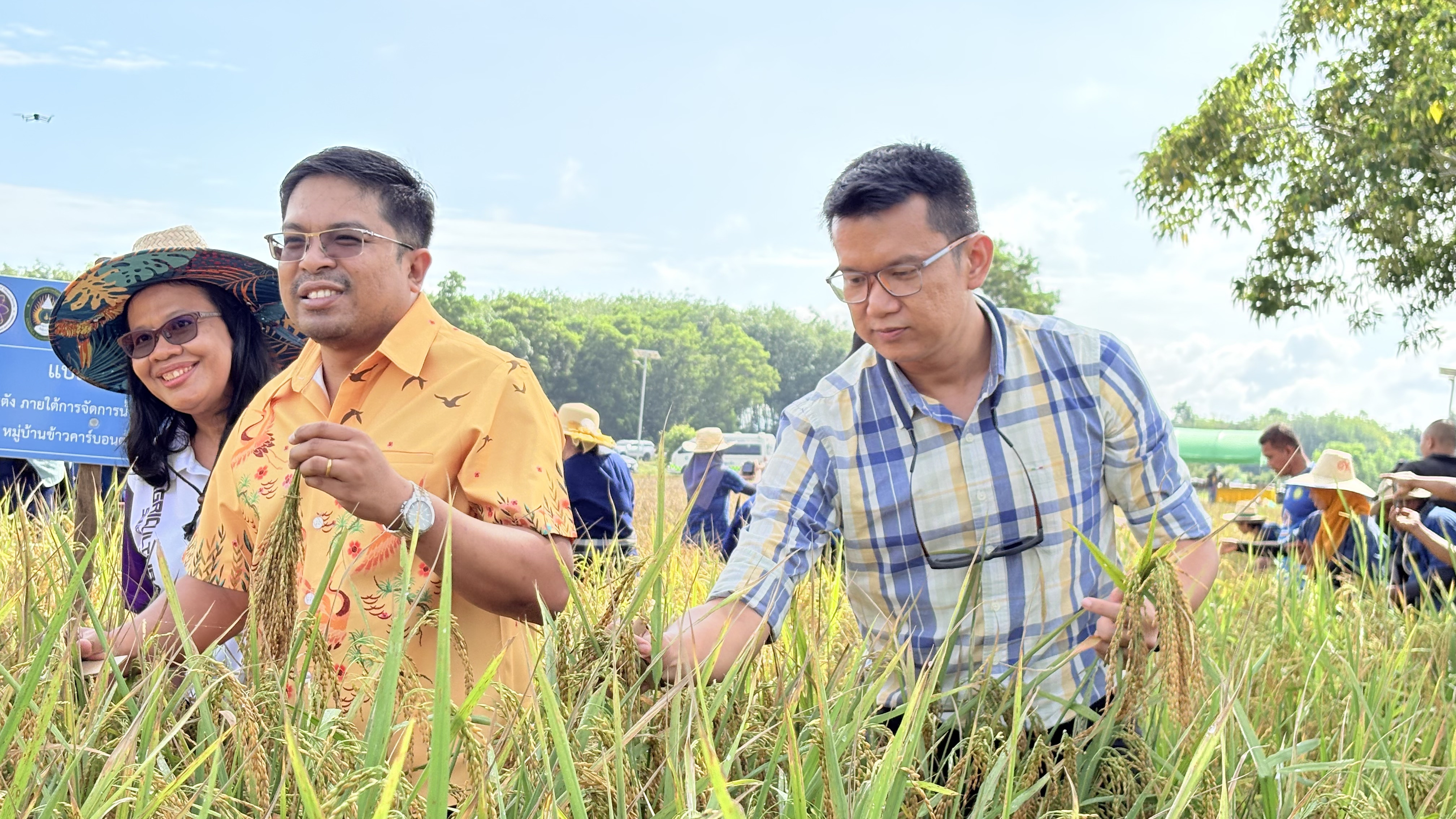 เมื่อวันที่ 20 พฤษภาคม 2568 คลินิกเทคโนโลยี สถาบันวิจัยและพัฒนา ร่วมกับ คณะเทคโนโลยีการเกษตร มหาวิทยาลัยราชภัฏสงขลา นำโดย ผู้ช่วยศาสตราจารย์ ดร.ภัทรพร ภักดีฉนวน หัวหน้าโครงการ ผู้ช่วยศาสตราจารย์ ดร.ธิติมา พานิชย์ ร่วมกับ นายเสกสม พัฒนาพิชัย นักวิชาการเกษตรชำนาญการพิเศษ สถานีทดลองการใช้น้ำชลประทานที่ 7 (ปัตตานี) และนายมีชัย เซี่ยงหลิว นักวิจัย ศูนย์พันธุ์วิศวกรรมและเทคโนโลยีชีวภาพแห่งชาติ สวทช. ได้จัดโครงการอบรมเชิงปฏิบัติการเรื่อง “การถ่ายทอดความรู้ข้าวพันธุ์ใหม่ เพื่อรองรับการปลี่ยนแปลงสภาพภูมิอากาศ” โดยมีวัตถุประสงค์ให้ผู้เข้าร่วมได้รับความรู้ความเข้าใจเกี่ยวกับข้าวพันธุ์ใหม่เพื่อรองรับการเปลี่ยนแปลงสภาพภูมิอากาศ และให้ผู้เข้าร่วมโครงการสามารถเลือกใช้พันธุ์ข้าวที่เหมาะสมกับสภาพแวดล้อมของตน ส่งผลให้การเพาะปลูกมีประสิทธิภาพมากขึ้นและลดความเสี่ยงจากสภาพอากาศที่แปรปรวน ณ หมู่บ้านข้าวกูแบสีรา ตำบลกอลำ อำเภอยะรัง จังหวัดปัตตานี