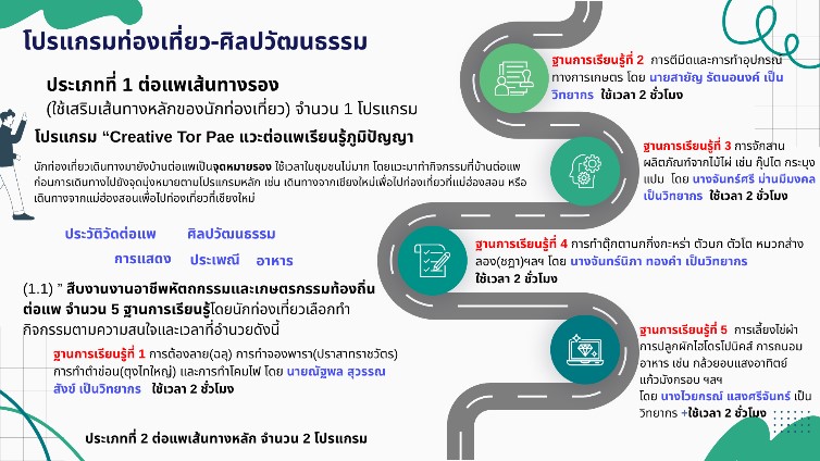 กิจกรรมที่ 1 การสร้างเส้นทางท่องเที่ยวใหม่ที่เน้น Low Carbon Tourism ให้เชื่อมโยงระหว่างกิจกรรมทางวัฒนธรรม (ประเพณี อาหารพื้นถิ่น ศิลปะการแสดง) ที่พักชุมชนโดย Geolocation ตามมาตรฐาน Google Maps รายงานโดย นายศรัญญู มูลน้ำ วันที่รายงาน 30/09/2568 [5685]  |