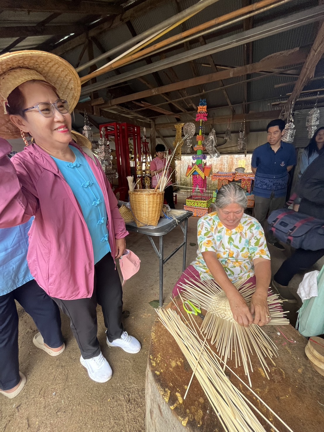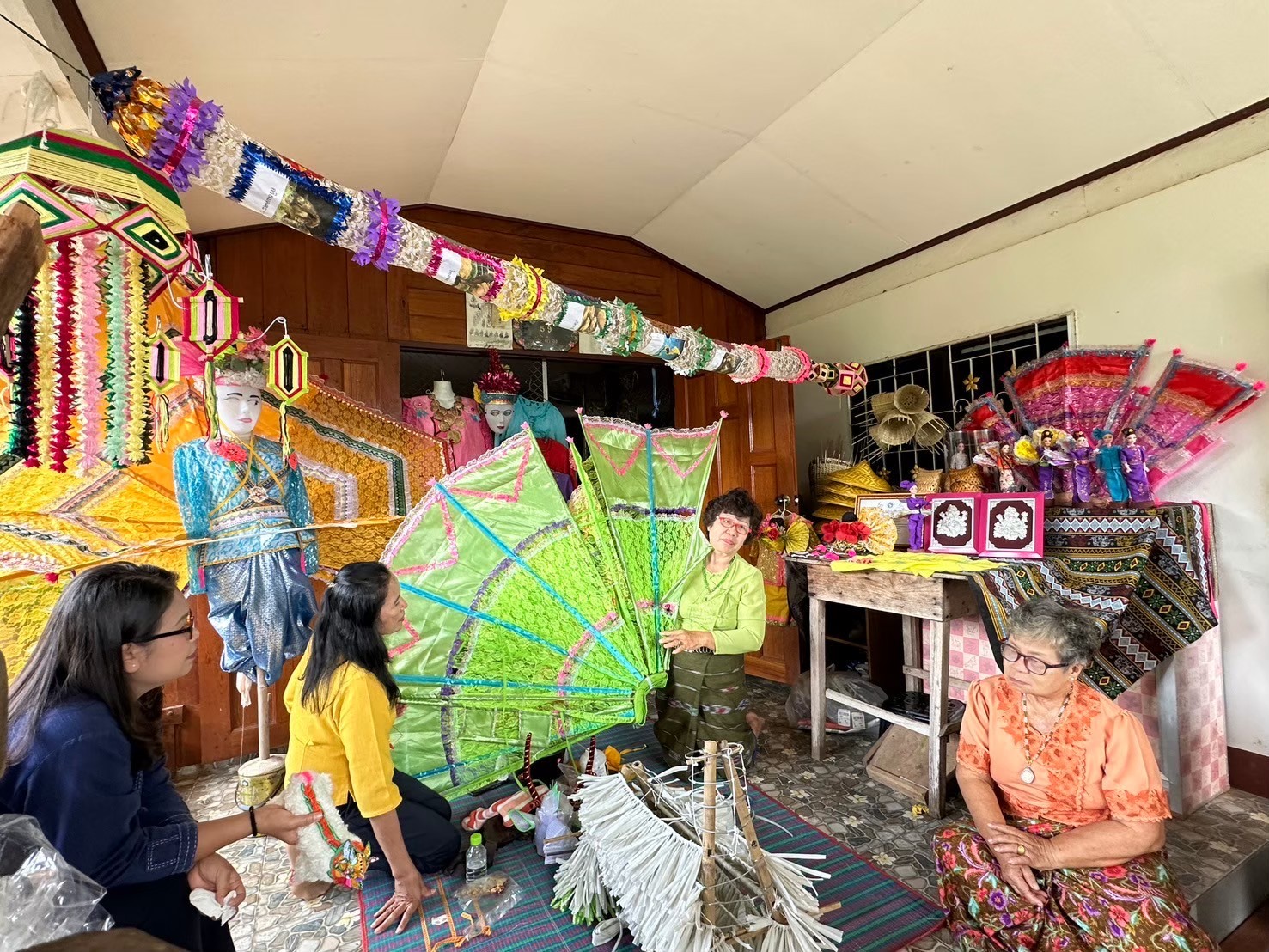 ฐานที่ 4 การทำตุ๊กตานกกิ่งกะหร่า ตัวนก ตัวโต ฯลฯ. ตั้งอยู่บ้าน ป้ามุ้งหรือนางจันทร์นิภา ทองคำ หมวกส่างลอง (ชฎา) ป้ามุ้ง เป็นผู้จัดการบ้านอยู่ตรงข้าม