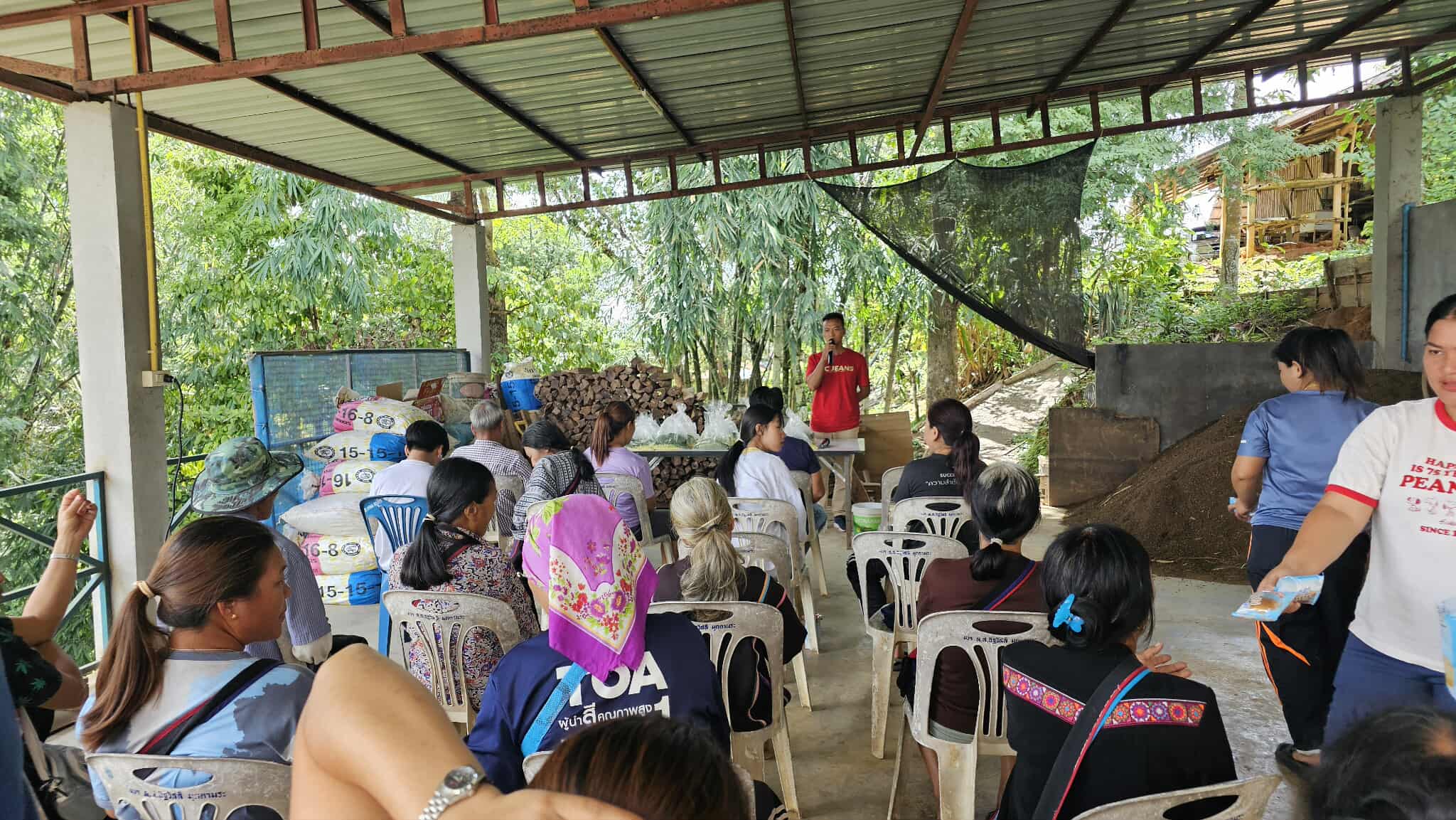 ณ ที่ทำการกลุ่มวิสาหกิจชุมชนสามัคคีเกษตรอินทรีย์ฟาร์ม ให้กับสมาชิกกลุ่ม สมาชิกชุมชนและสมาชิกชุมชนบริเวณใกล้เคียง จำนวน 50 คน โดยวิทยากรคือ นายอภิชัย มาเยอะ ประธานกลุ่มวิสาหกิจชุมชนเกษตรอินทรีย์ฟาร์ม ได้ให้ความรู้ในการด้านการผลิตปุ๋ยหมักอินทรีย์ชีวภาพไตรโคเดอร์มา