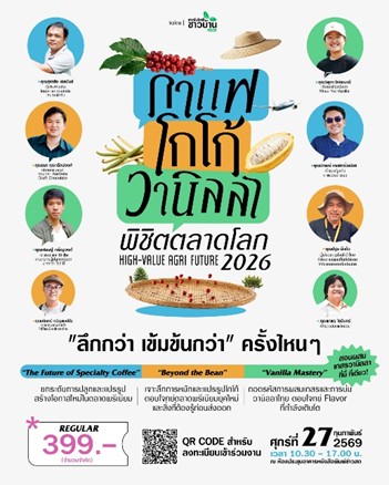 วันที่ 27 กุมภาพันธ์ 2569 รศ.ดร.สุขสมาน สังโยคะ เข้าร่วมงานสัมมนางาน ‘กาแฟ-โกโก้-วานิลลา พิชิตตลาดโลก HIGH-VALUE AGRI FUTURE 2026’ ที่อาคารข่าวสด แขวงลาดยาว เขตจตุจักร กรุงเทพฯ เพื่อต่อยอดองค์ความรู้ด้านมาตรฐานการแปรรูปหลังการเก็บเกี่ยว การควบคุมโปรโตคอลการหมักและการตากอย่างมีประสิทธิภาพ ซึ่งเป็นหัวใจของการสร้างรสชาติเฉพาะถิ่น พัฒนาความปลอดภัยด้านผลิตและแปรรูปโกโก้อย่างต่อเนื่อง